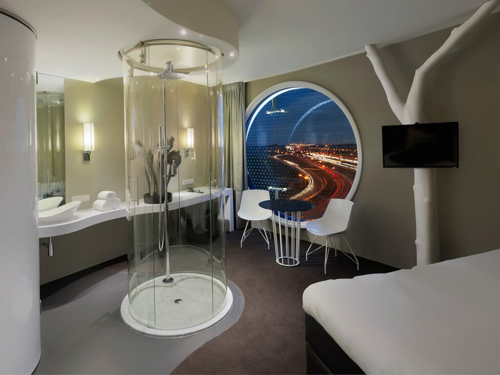 Fletcher Hotel Amsterdam is een uniek hotel dat beschikt over 120 luxe designkamers. Door de grote ronde raampartijen, variërend van vier tot acht meter doorsnee, is de kamer heerlijk licht en heeft u een spectaculair uitzicht over Amsterdam. En als de Buitenveldertbaan in gebruik is dan zie je de vliegtuigen naar Schiphol van heel dichtbij landen. Je hebt dan letterlijk het gevoel dat je in een verkeerstoren zit.