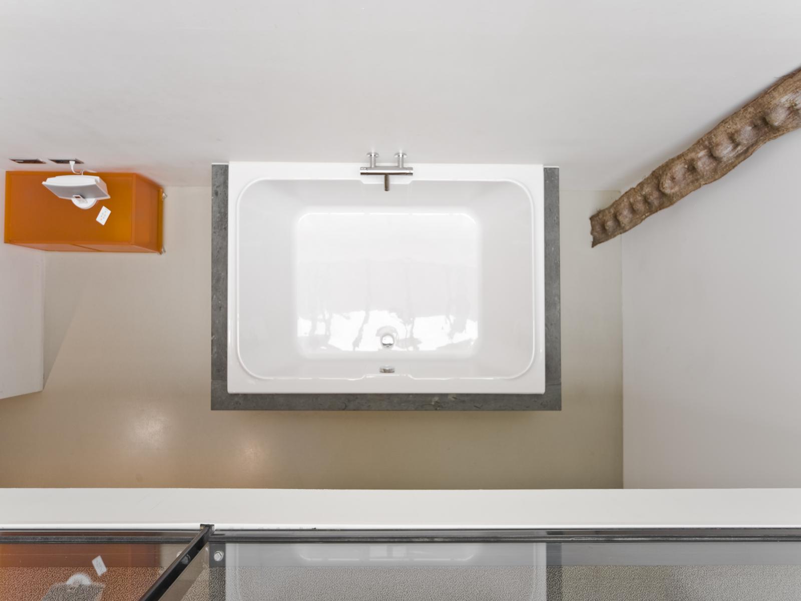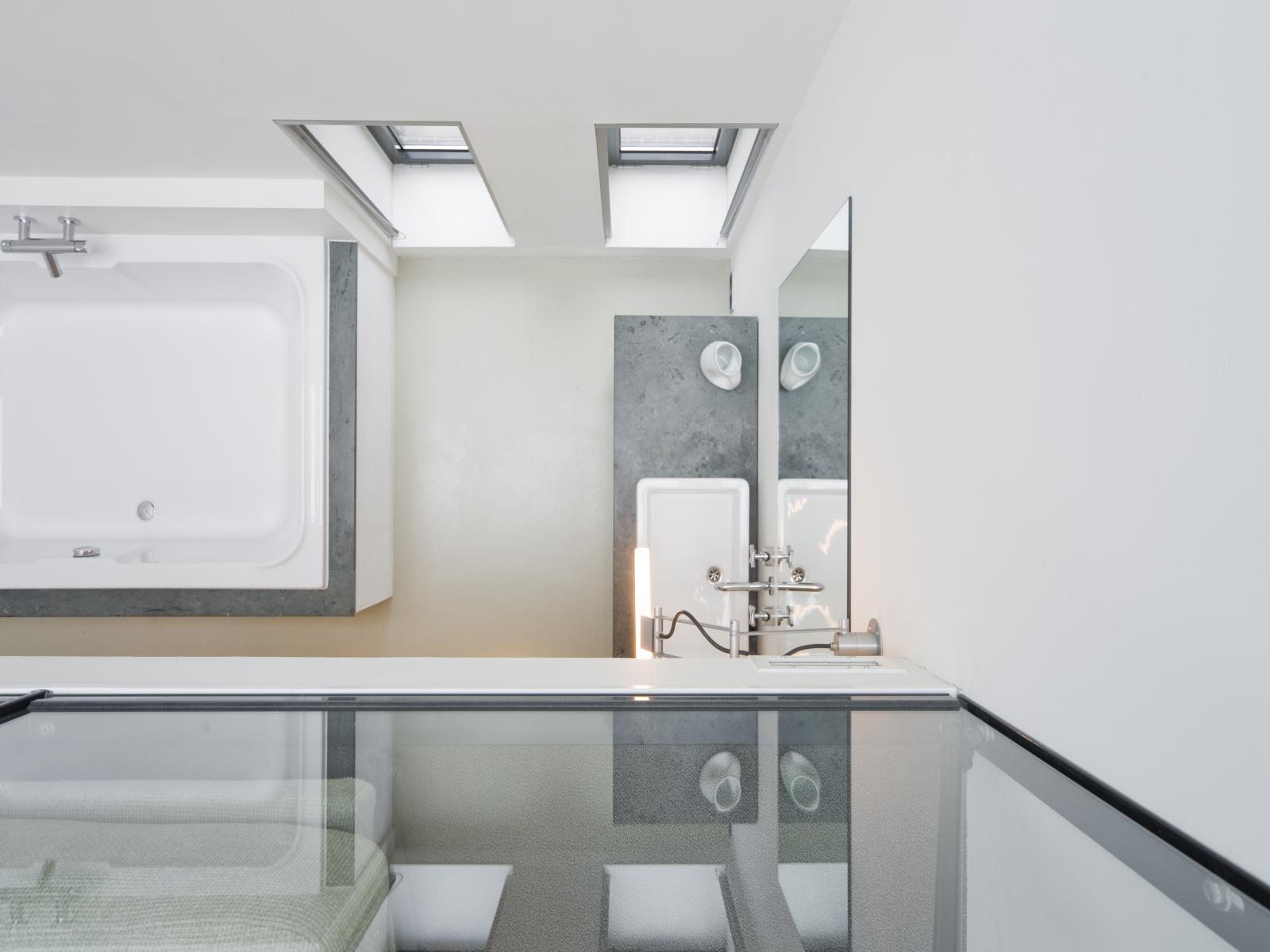 Overnacht u in een vide studio? Dan heeft uw kamer twee verdiepingen en vloerverwarming! Daarnaast heeft de badkamer een zes meter hoog glazen plafond en een 500 liter bad. ’s Avonds romantisch vanuit uw bad de sterren bekijken dus!