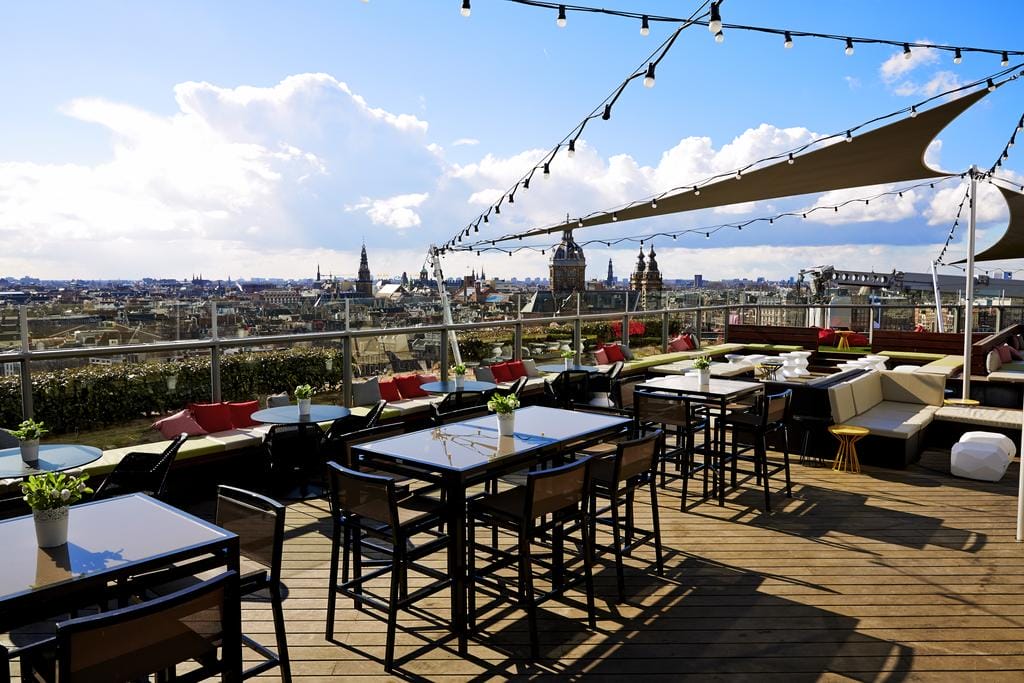 SkyLounge Panorama terras van het Double Tree Hotel in Amsterdam