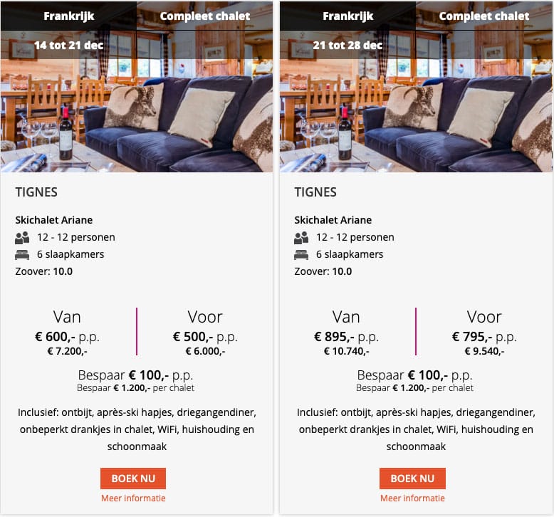 In de week van 14 december betaal je slechts € 500 per persoon, in de week van 21 december betaal je weliswaar meer, namelijk € 795 per persoon, maar je krijgt hier heel veel voor terug.