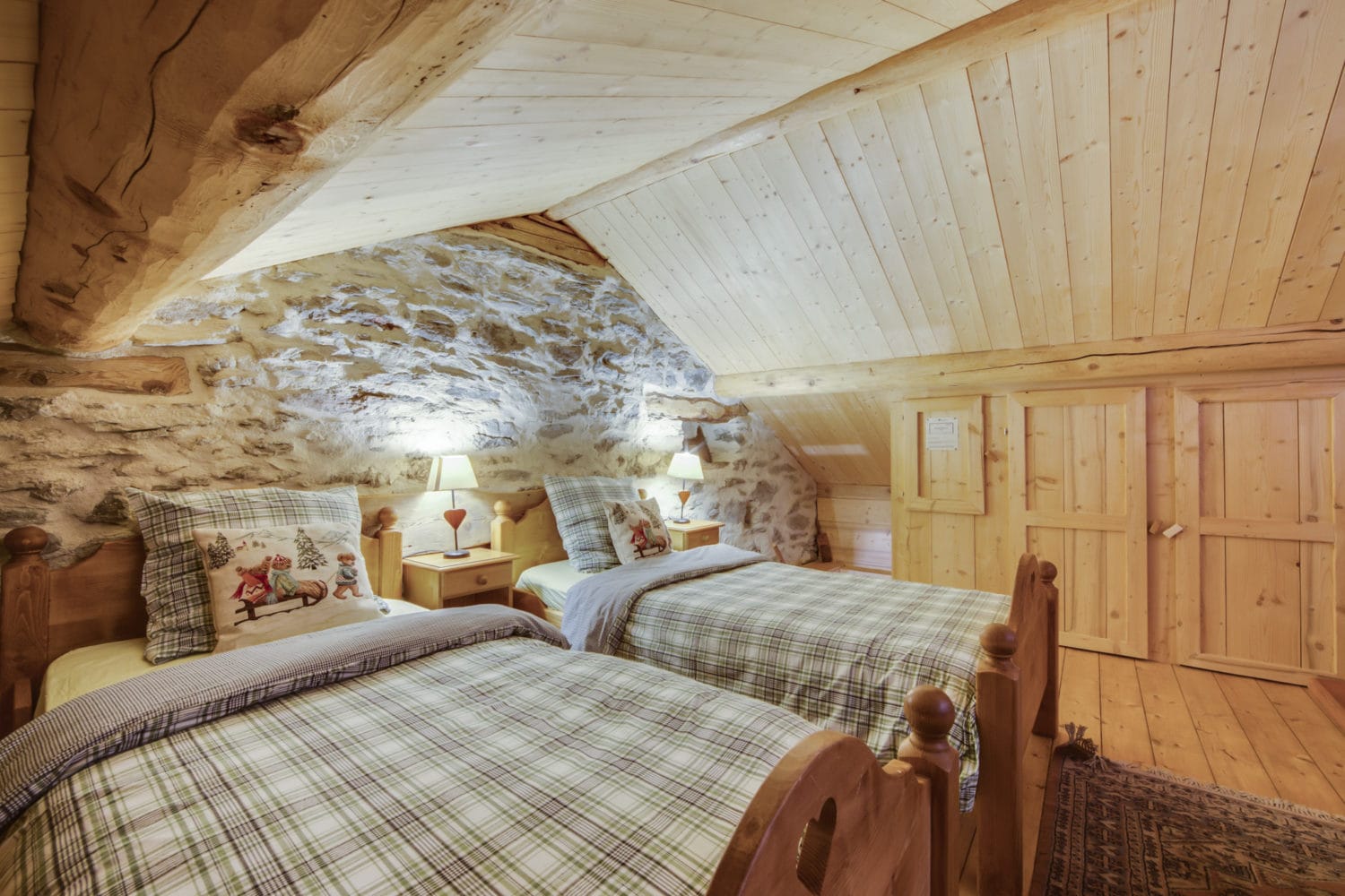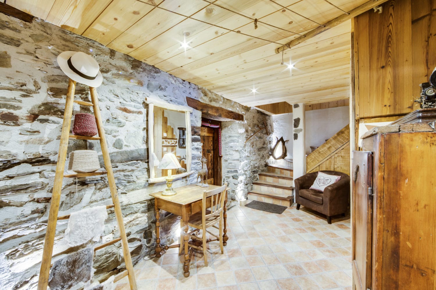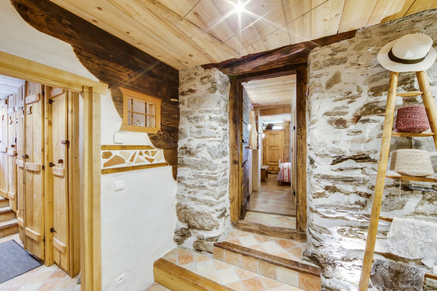 Het chalet is recentelijk van top tot teen en tot in de perfectie in authentieke stijl gerestaureerd tot een hoog niveau. En heeft de ‘Savoie’ kenmerken als een dak van grote natuurstenen platen, stenen muren, houten balkons en originele plavuizen in combinatie met oud-houten vloerdelen. Alle originele details zijn behouden gebleven en daaraan is toegevoegd het comfort van nu, zoals vloerverwarming door het gehele chalet.