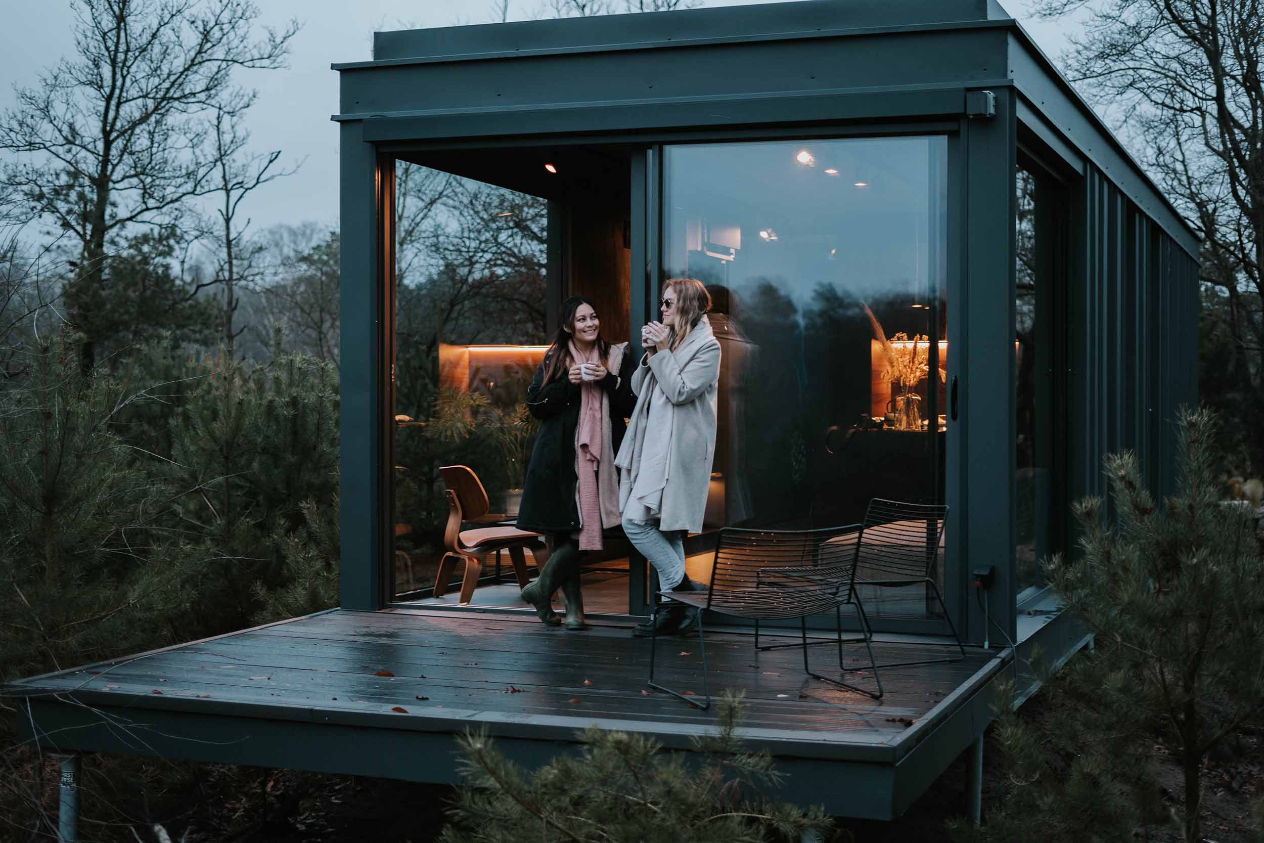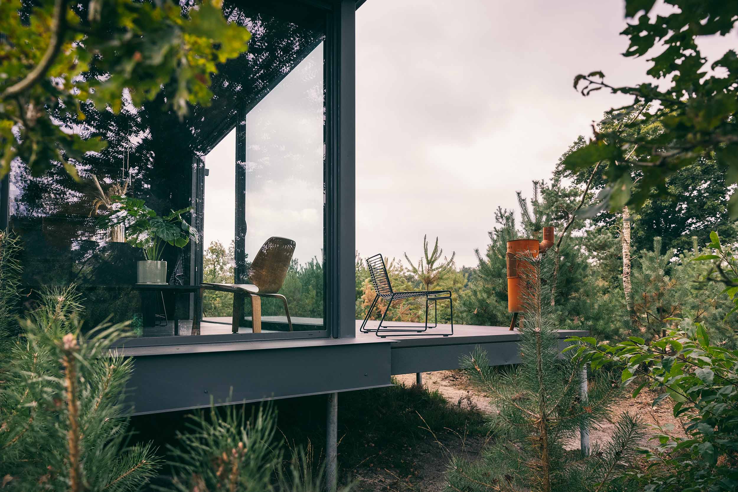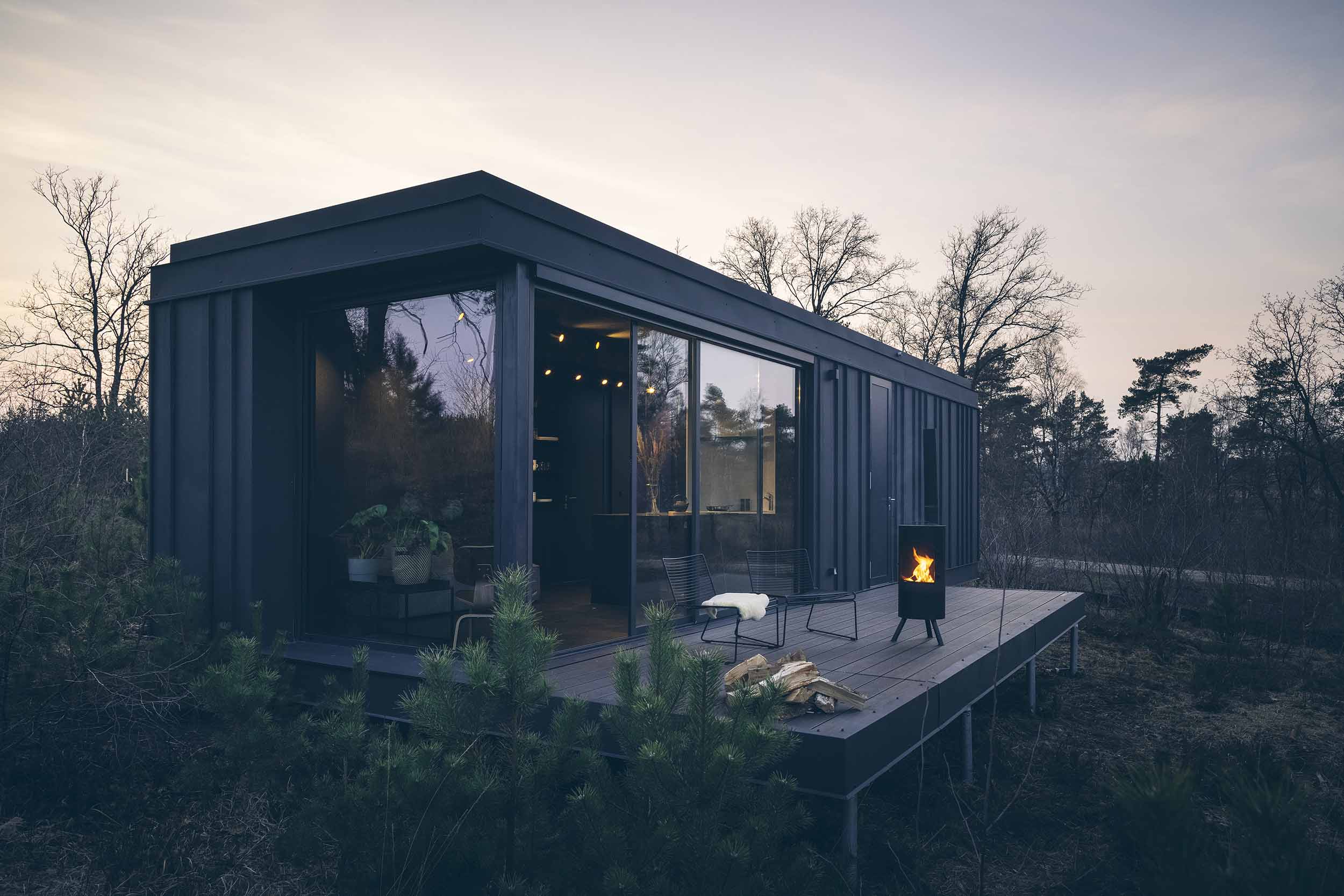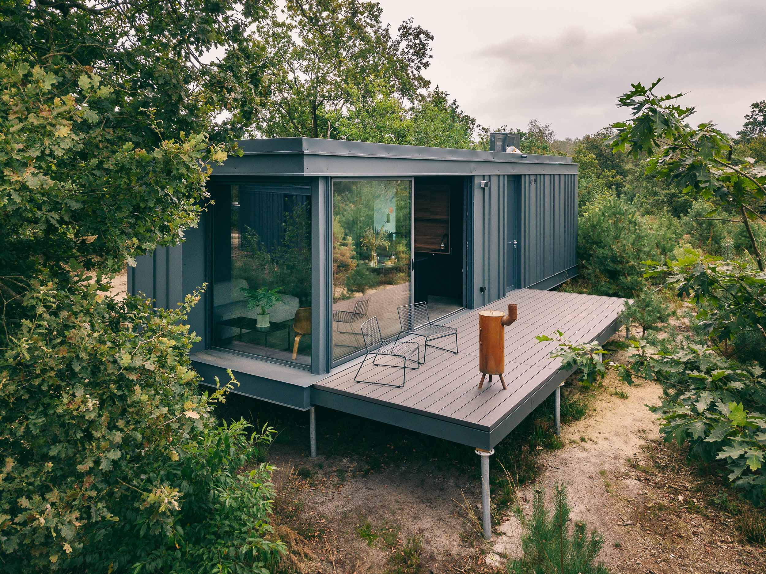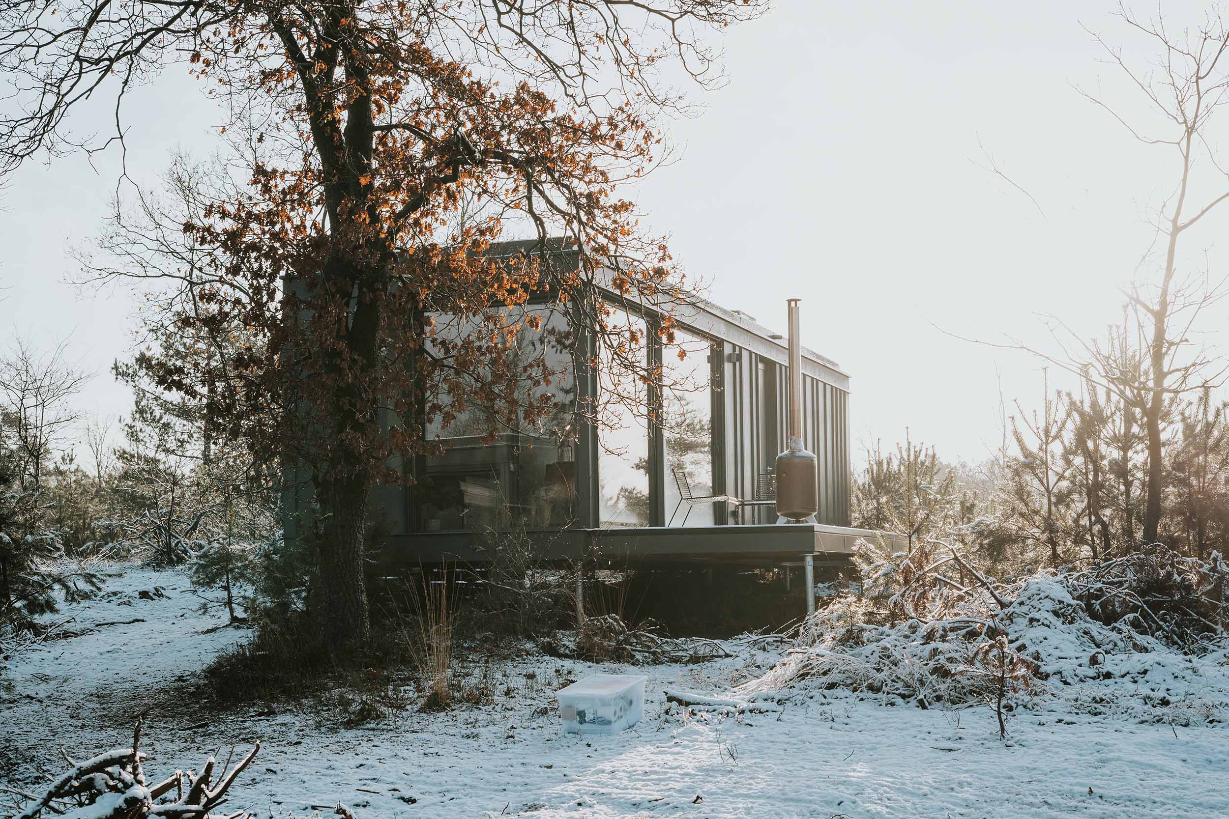 De design outdoor suites van Cuber staan op de Veluwe. Ze zijn zo gunstig mogelijk geplaatst zodat je optimaal van het uitzicht op de omgeving kunt genieten.