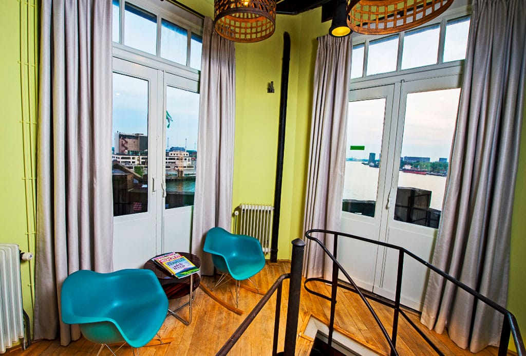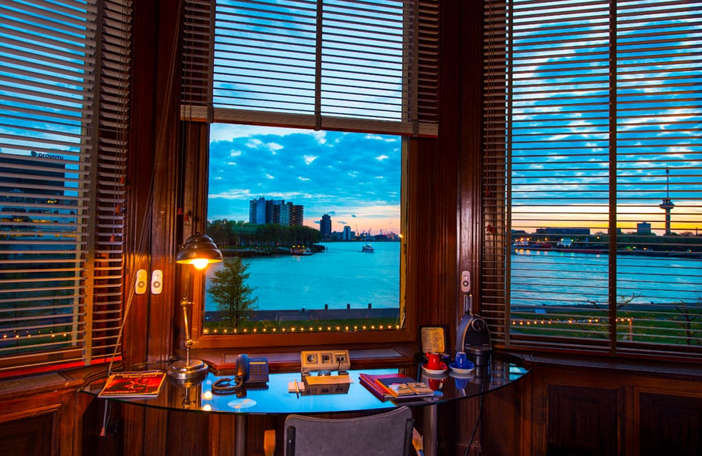 Maar ook vanuit de kamers is het zicht adembenemend, zelfs in de winter als de regen tegen de ramen slaat. Vooral in de avond is de Maasstad prachtig met de vele lichtjes op en naast het water.