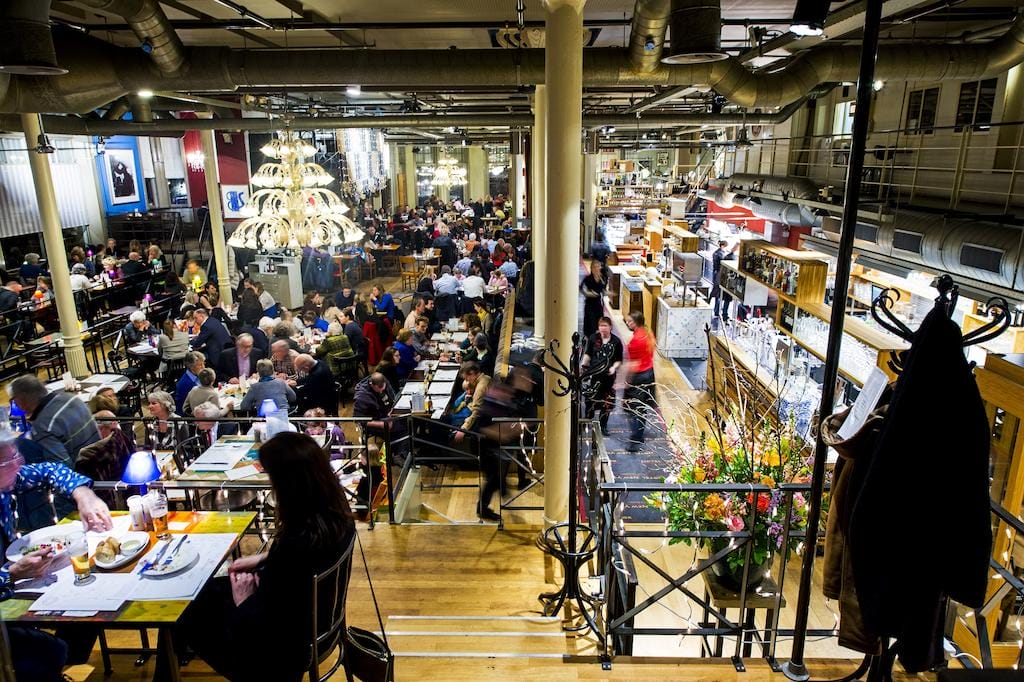 Op de plek waar vroeger vele klerken de papierwinkel van de vertrekkende landverhuizers controleerden, zitten tegenwoordig zakelijke en particuliere bezoekers naast elkaar te genieten van de bijzondere sfeer die in het restaurant hangt.