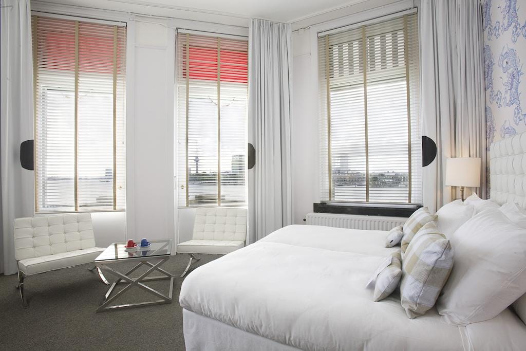Hotel New York in Rotterdam heeft 72 unieke hotelkamers waaronder twee kamers in de groene torentjes. Deze torenkamers zijn voormalige conciërge-woningen op het dak naast de directievertrekken.