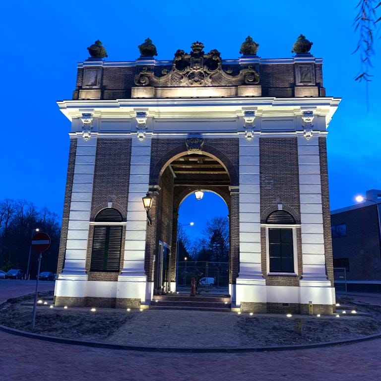 Vanuit deze Middeleeuwse stadspoort kijk je uit over stadssingel en het Molenwaterpark.
