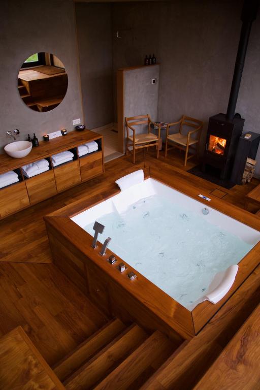 Sommige accommodaties hebben zelfs een privé houtgestookte hottub. Hout voor de hottub kan gekocht worden in winkel van het park.