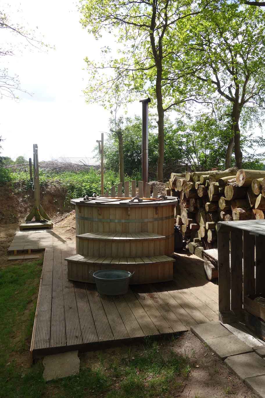 Kampvuurtje stoken (hier mag het nog) en lekker badderen in de houtgestookte hottub