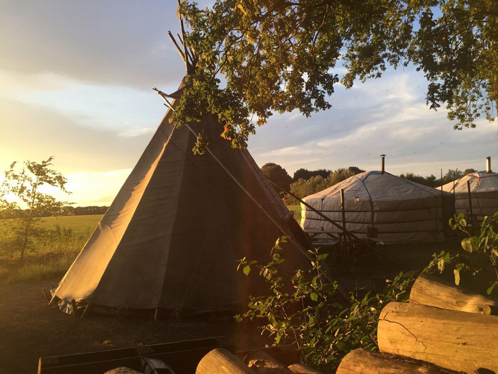 Kamperen in een tipi is een bijzondere ervaring. Het brengt je dicht bij de natuur. Je hoort de vogels fluiten, de wind door de bomen ruisen en kikkers kwaken in de vijver. En ‘s nachts kijk je door het rookgat naar de sterrenhemel.