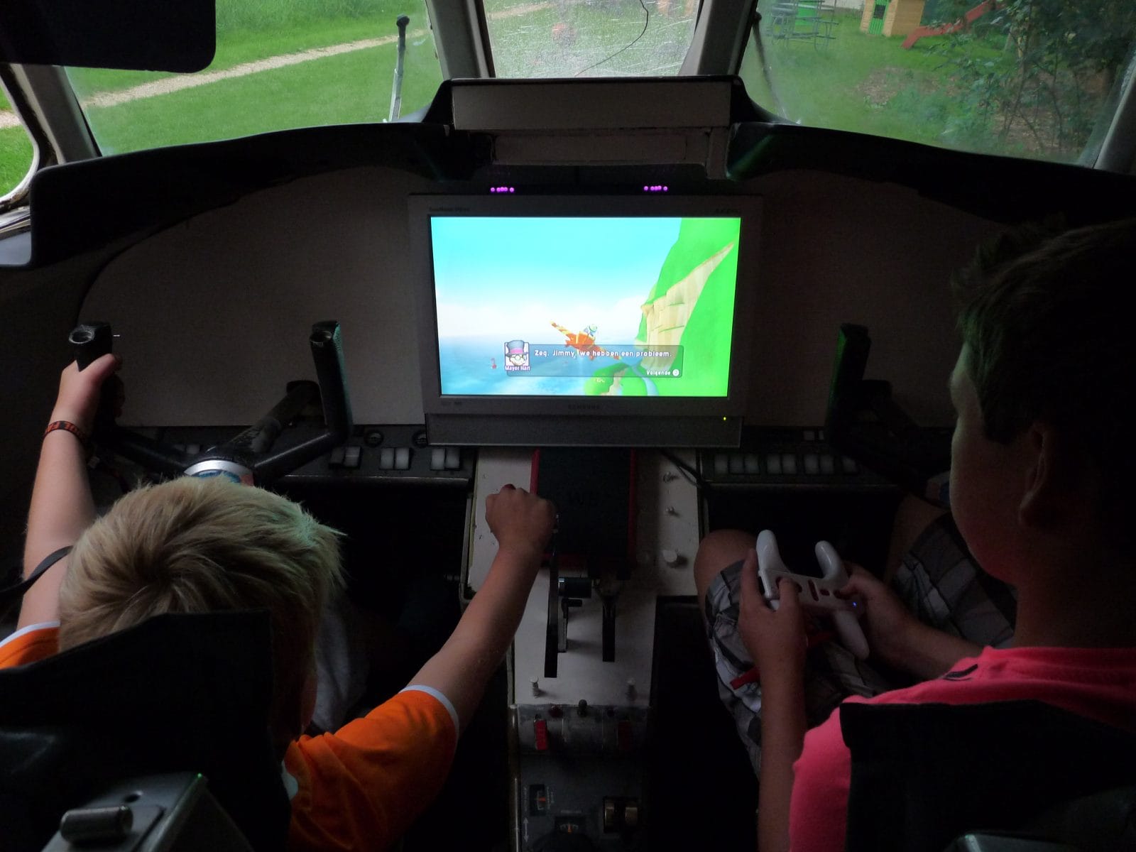 Ook bevindt er zich nog een zitje aan de buitenkant van het vliegtuig waar je heerlijk kunt zitten en genieten van de buitenlucht. Leuk detail is ook dat je zelf  in de cockpit aan alle knoppen kunt zitten om te proberen het vliegtuig weer van de grond te krijgen middels de Flight Simulator aan boord!