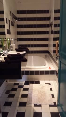 Achter de bedstede ligt de badkamer met marmeren wastafels en een riant twee-persoons bad. Na een weldadige nacht krijgen de gasten een heerlijk ontbijt geserveerd in het pittoreske ontbijtkeukentje.
