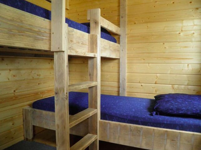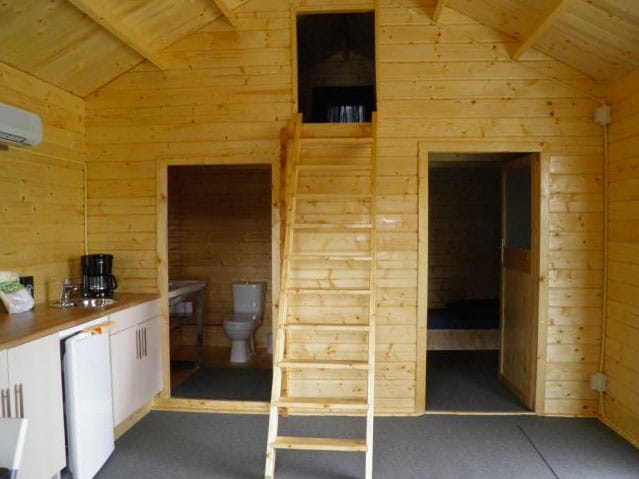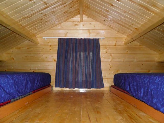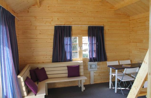 Op deze camping staat een gezellig en romantisch dijkhuisje. De benedenverdieping van deze luxe blokhut is ingericht met een praktische keuken, een gezellige zithoek, een badkamer met toilet en wastafel. Ook is er beneden een slaapkamer met twee eenpersoons bedden.