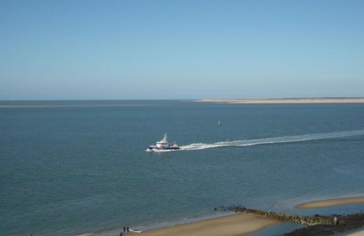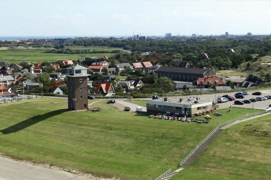 Het zicht rijkt kilometers ver over zee of natuurijk gewoon de kustlijn. Ook de marinebasis, het hart van Den Helder, is goed te zien.