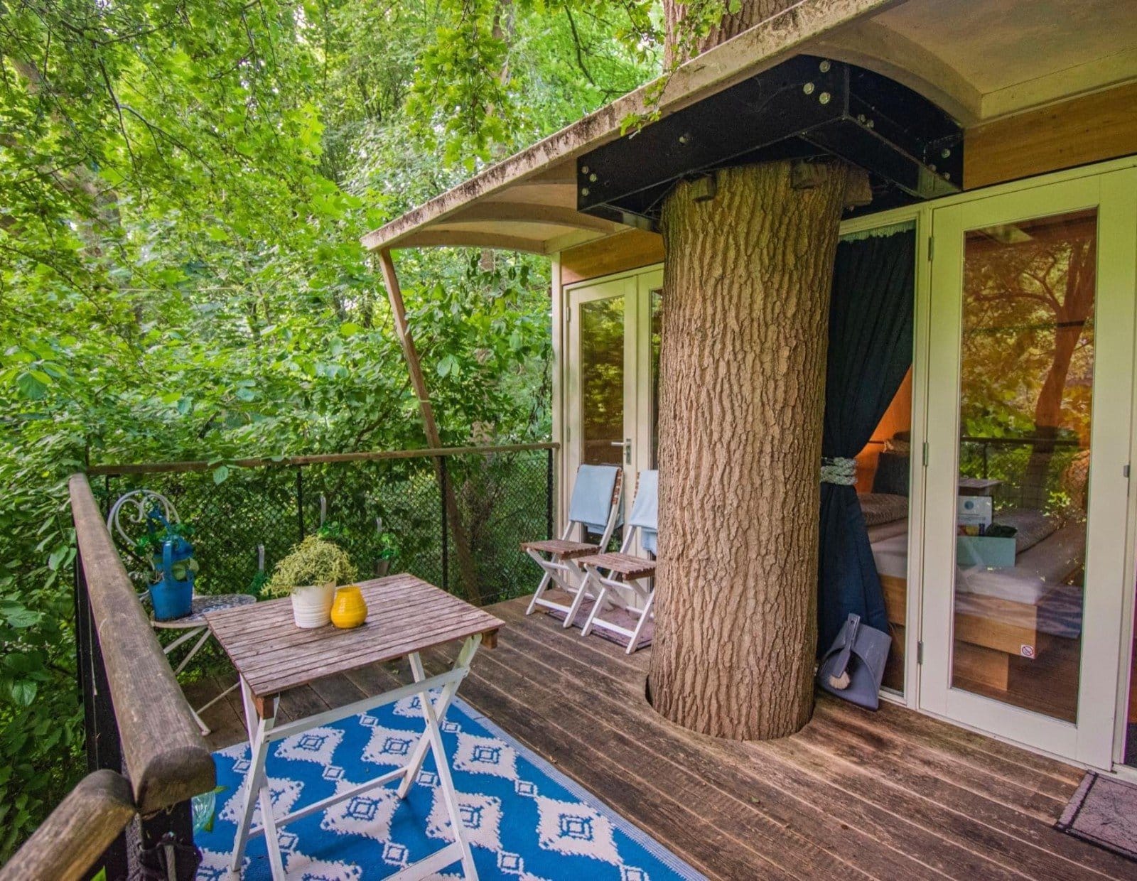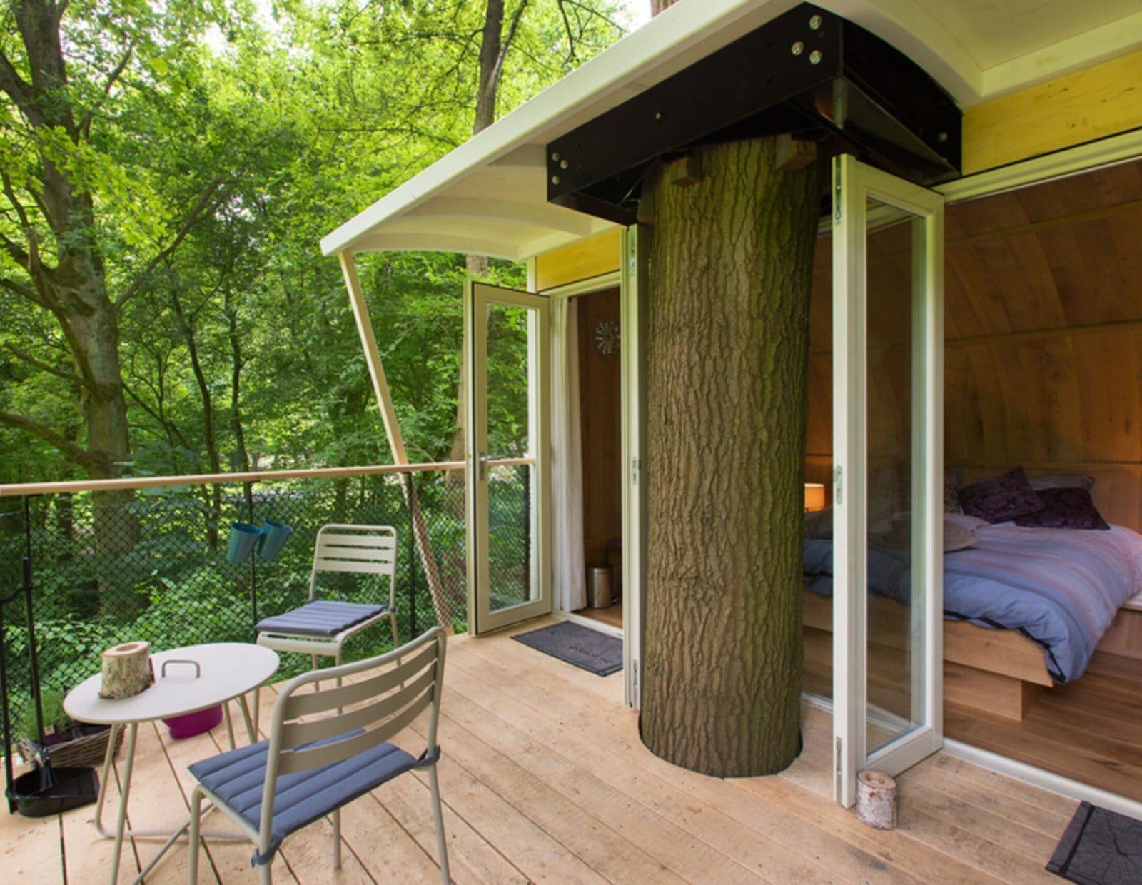 In deze sfeervolle boomhut zijn de bedden al opgemaakt bij aankomst, en liggen er zachte badjassen en handdoeken voor je klaar. Begin de ochtend ontspannen met een kopje Nespresso of een Special-T op je privé-terras, terwijl de zon opkomt en je geniet van de rust om je heen. Het is de ideale setting voor een romantisch uitje.