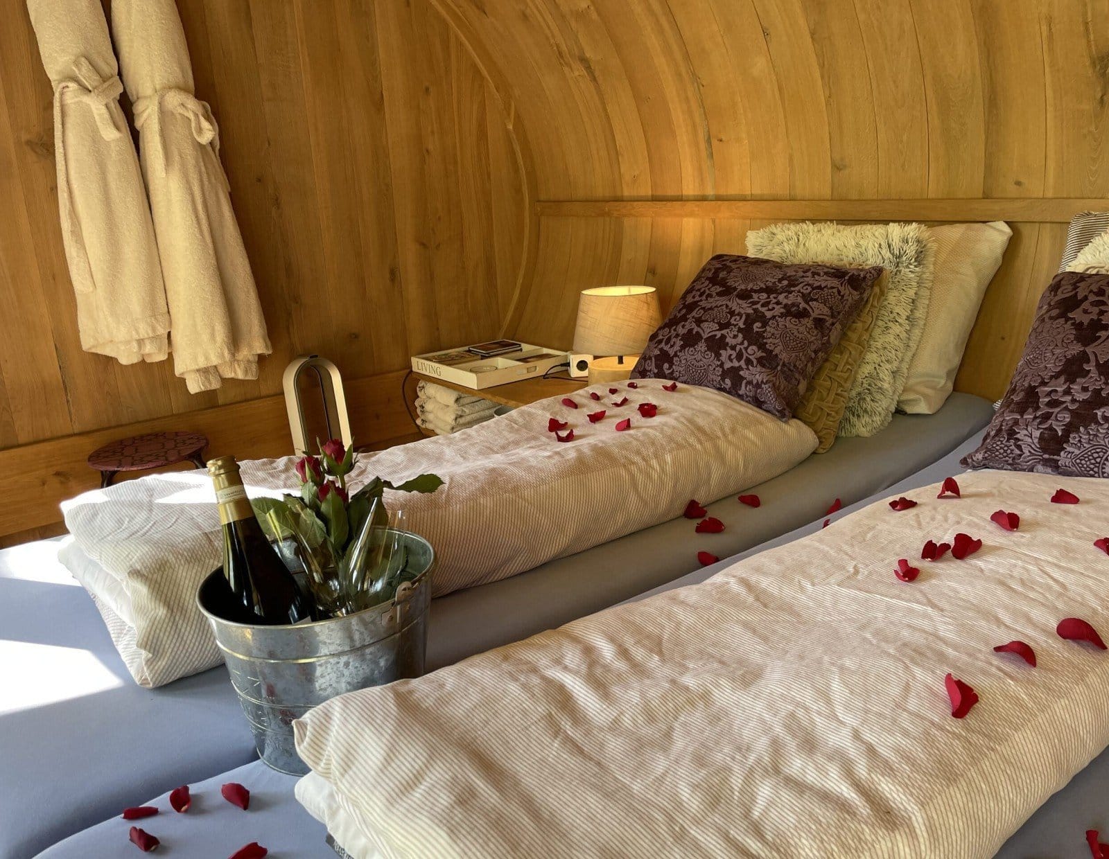 Hoewel de boomhut geen eigen sanitair heeft, kun je gebruikmaken van de uitstekende faciliteiten van de camping. Voor een klein extra bedrag kun je bovendien een privé douche en sanitair bijboeken. Overdag maak je een mooie wandeling of ontdek je de omgeving, en ‘s avonds kruip je samen onder de dekens in deze knusse en warme boomhut. Perfect voor een nachtje weg met z’n tweeën!