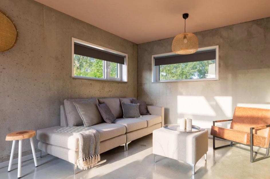 De bank in de woonkamer is een slaapbank en dus geschikt voor nog twee personen, al moeten we eerlijk zeggen dat het dan wel heel krap wordt in dit strandhuisje in Vlissingen.