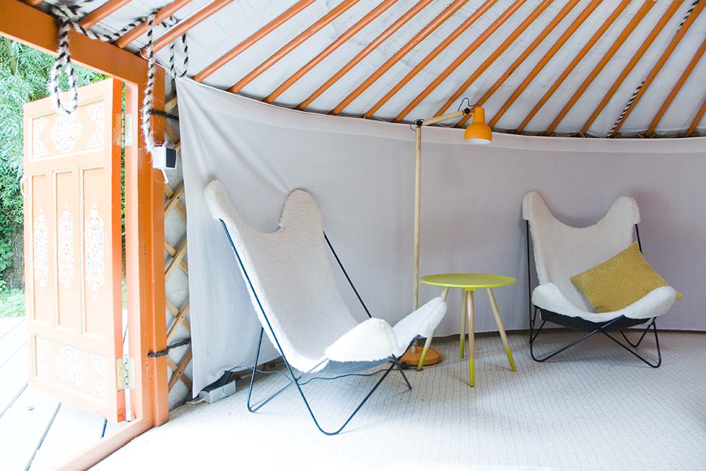- Sfeervol ingerichte Yurt met heerlijk tweepersoons bed, comfortabele gaskachel en relaxstoelen