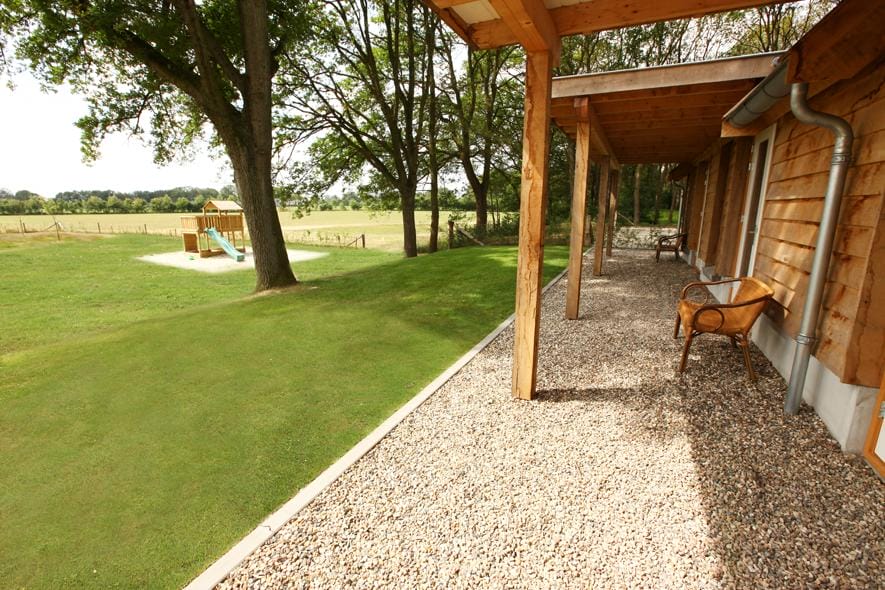 De lodge, welke is opgetrokken uit eikenhout, is de nieuwste aanwinst op het erf. Deze lodge biedt ruimte aan maximaal vier personen.
