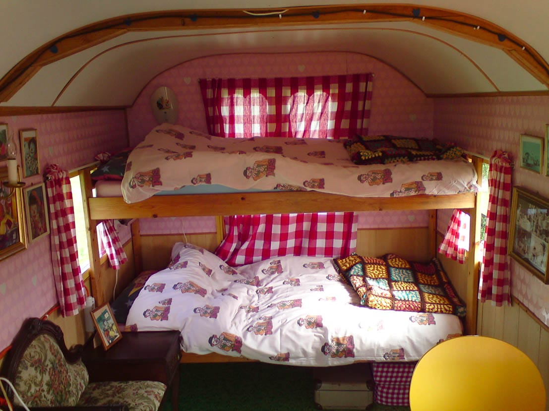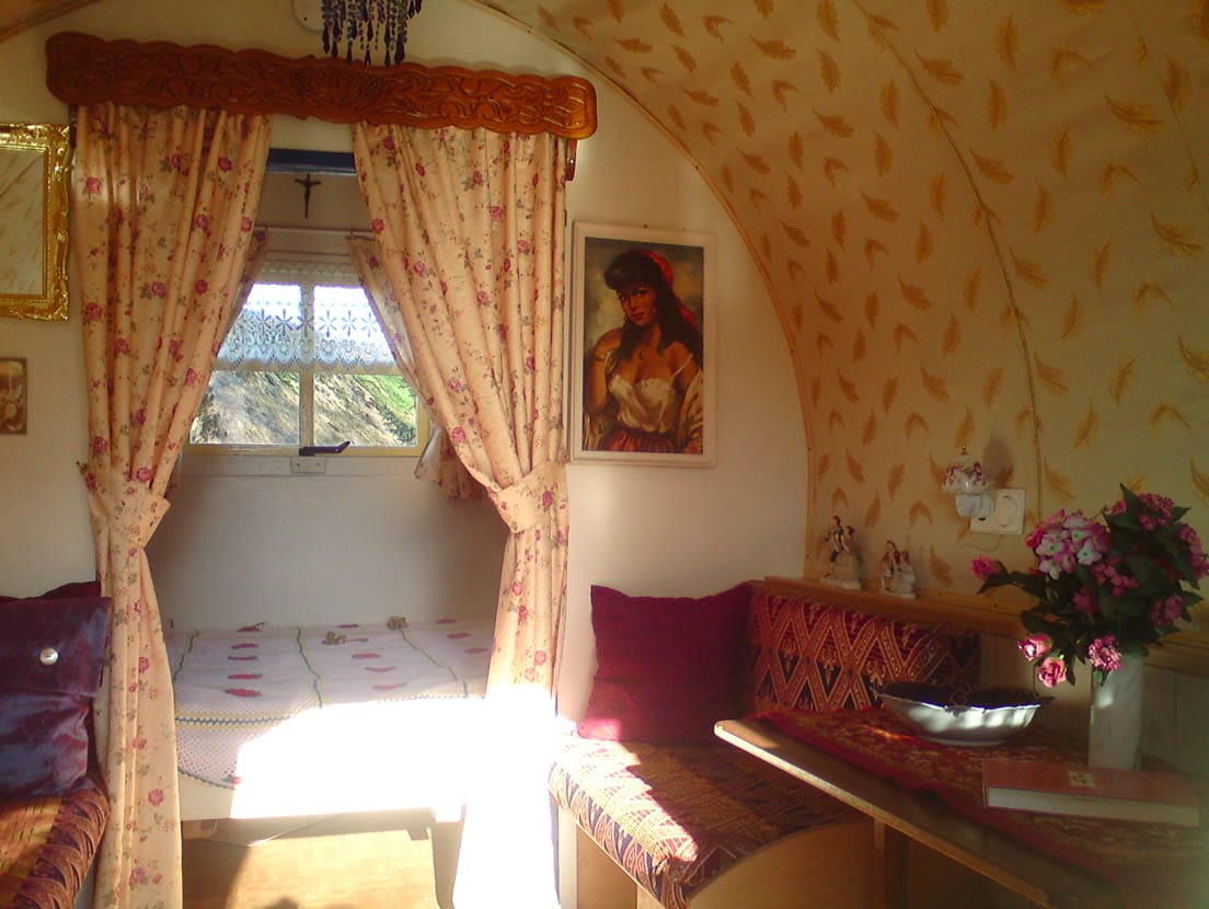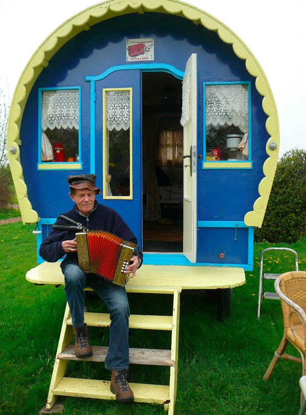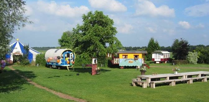 Elke wagen heeft zijn eigen naam en eigen inrichting; wat dacht u van ‘Rossige Roel’, de ‘Theatherwagen’, uiteraard de ‘Pipowagen’, de ‘Bonte wagen’, ‘Tante Thea’ of de ‘Ierse wagen’?