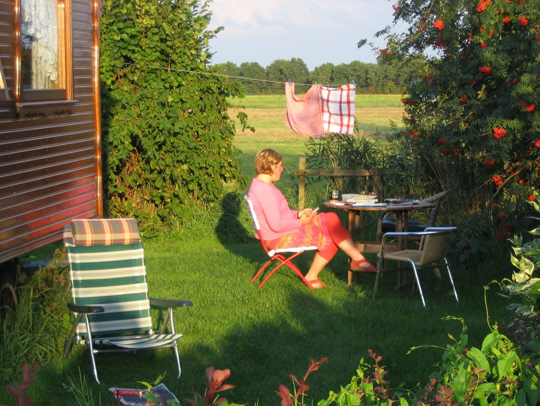 De volgende dag ontbijten met eieren van de eigen kippen en het gefluit van honderden vogels. U geniet van de aanblik van 10 andere woonwagens en van een weids uitzicht over het land met koeien en paarden.