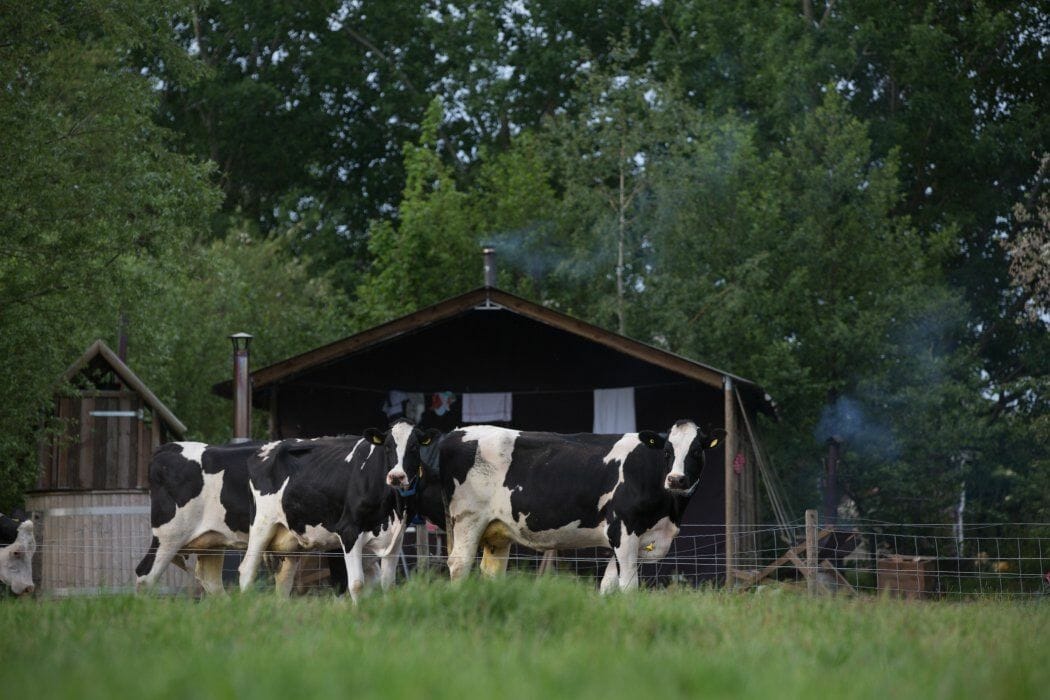 Boer Gert verzorgt ongeveer 70 koeien die in de zomermaanden grazen in de weilanden rondom en het is dan ook de uitgelezen kans om hierbij een handje te helpen. Maar als je meer zin hebt in een ontspannen middagje in de hottub, een verkoelende duik in de vaart of de luxe van een vers ontbijtje in je tent is dat ook allemaal mogelijk.