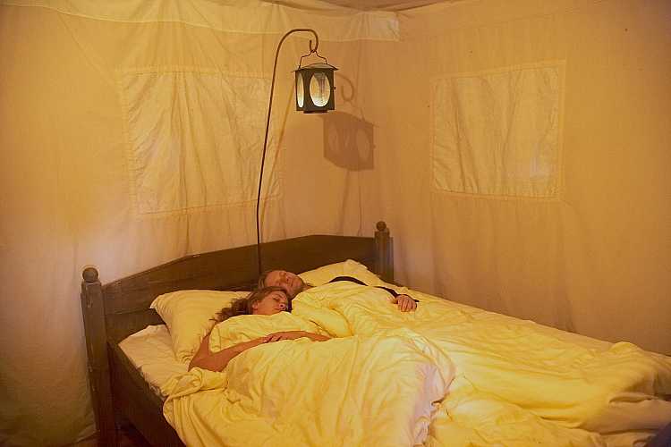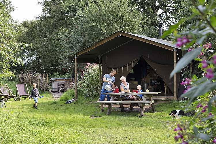 BoerenBed biedt op deze boerderij drie verschillende soorten canvas tenten aan; variërend van een basic tent tot een luxe tent met eigen douche en hottub.