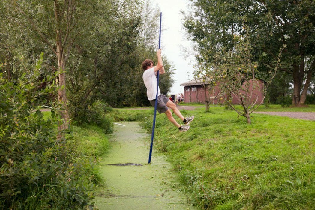 Op de boerderij kun je ook slootje springen (fierljeppen): de polsstok ligt voor je klaar!