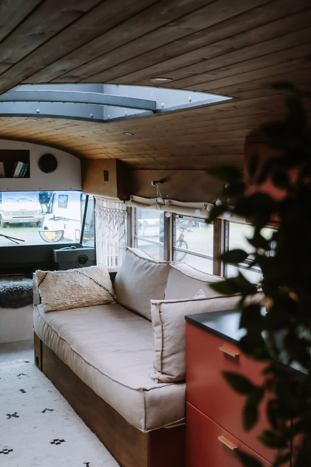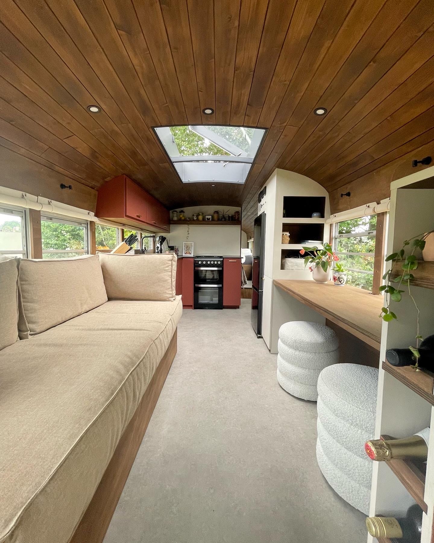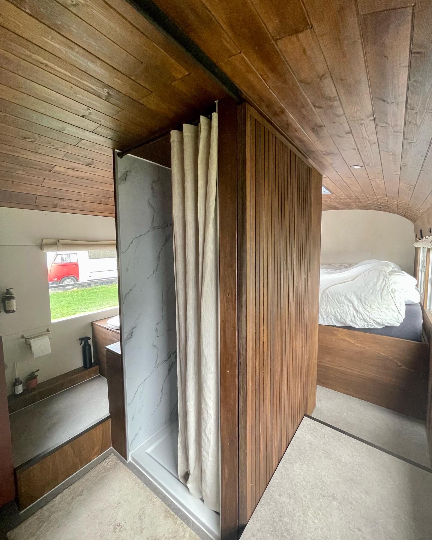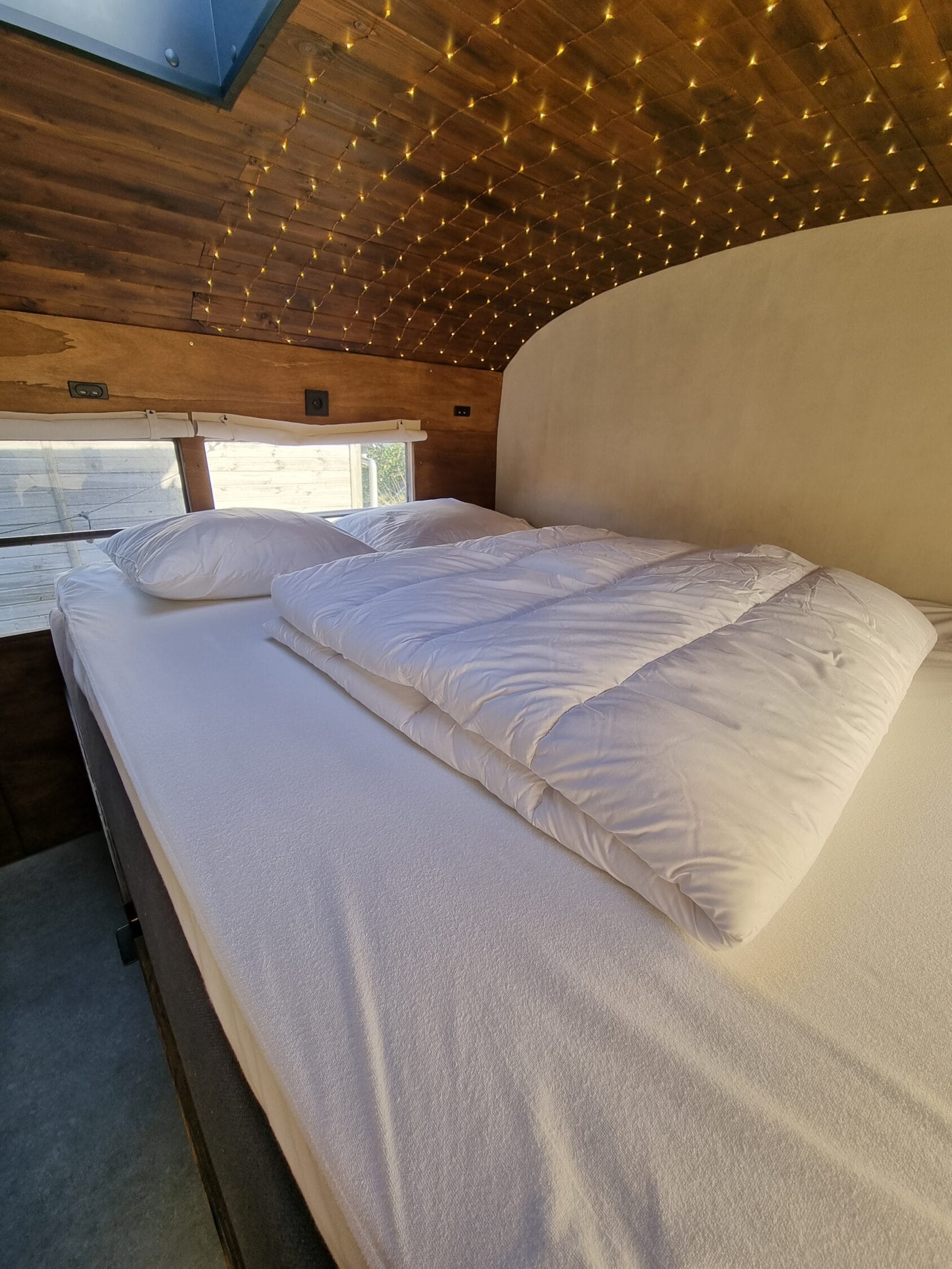Met plek voor 2 tot 4 personen is de bus een ideaal verblijf voor stellen, vrienden of kleine gezinnen. Het interieur heeft alles wat je nodig hebt: een tweepersoons boxspring, een slaapbank, een compleet uitgeruste keuken met een dubbele oven en een ruime koelkast met vriezer. De badkamer is voorzien van een douche en composttoilet, en zelfs vloerverwarming ontbreekt niet.