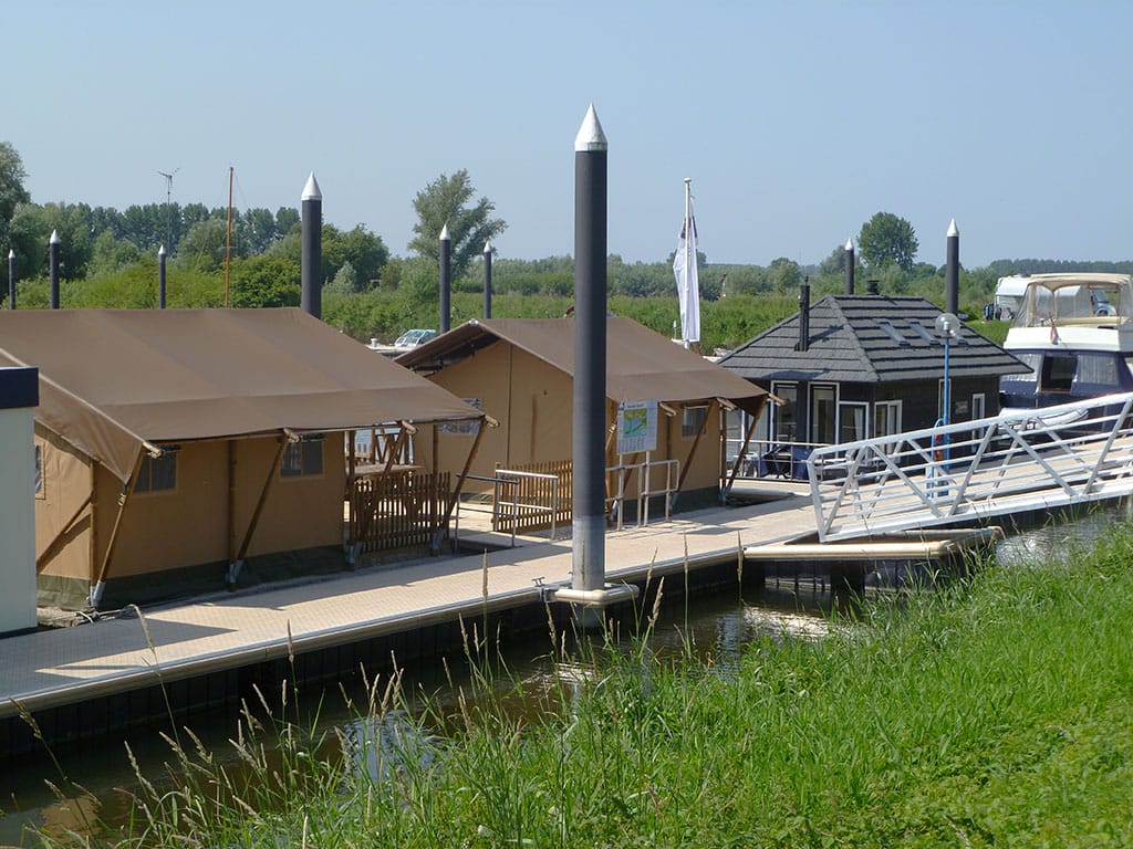 De sanitaire voorzieningen zijn op korte afstand te vinden aan de hoofdsteiger in een modern, nieuw gebouw. De tenten staan op een steiger aan het water en hebben een picknicktafel voor de tent staan waar u heerlijk kunt kijken naar alles wat er gaande is in de jachthaven.