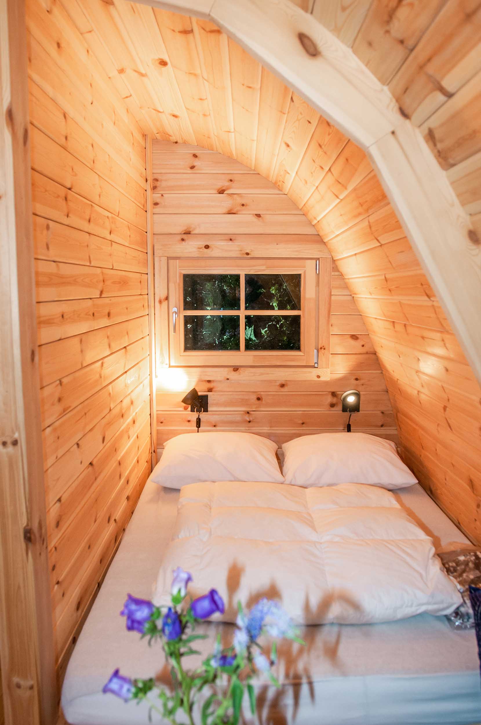 De tweepersoons Pod op de minicamping is een perfect voorbeeld van: je hoeft alleen een tas met kleding en je toiletspullen mee te nemen en je bent klaar! Hier krijg je de gezelligheid van het kamperen, maar tegelijkertijd ook het comfort van een vakantiehuis.