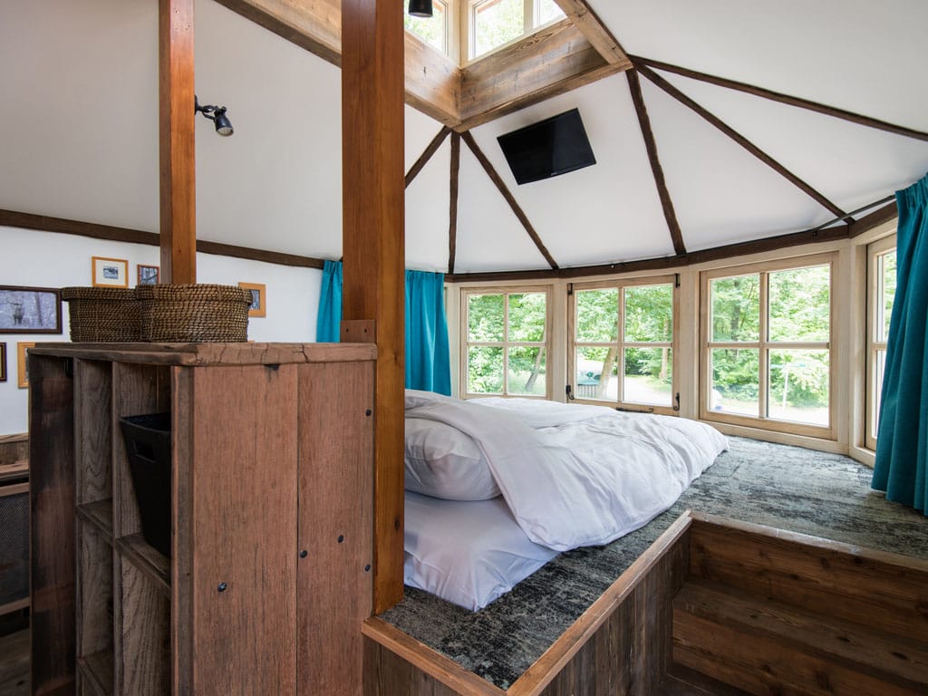 De hele inrichting van dit treehouse is trouwens ook geheel in stijl met de omgeving. Veel hout en ruwe materialen, maar dus wél met de luxe die u thuis ook gewend bent.