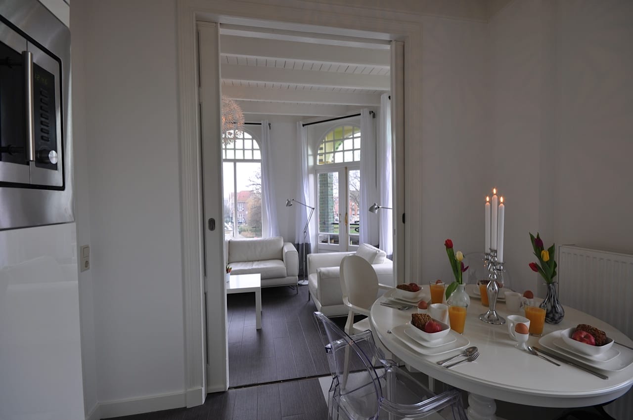 Beide appartementen zijn volledig ingericht en van alle gemakken voorzien. De woonkamer bestaat uit een sfeervolle zithoek, een eettafel en een moderne luxe keuken, waar u zelfs een Jura-koffiemachine aantreft waar u met verse Fairtrade koffiebonen de heerlijkste koffie drinkt.