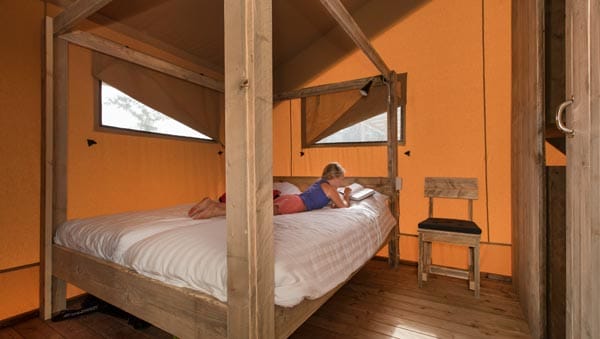 Een verblijf op dit park kan op één van de kampeerplekken, in één van de vakantiehuisjes, maar eigenlijk is een overnachting in één van de luxe safaritenten nog wel veel leuker.