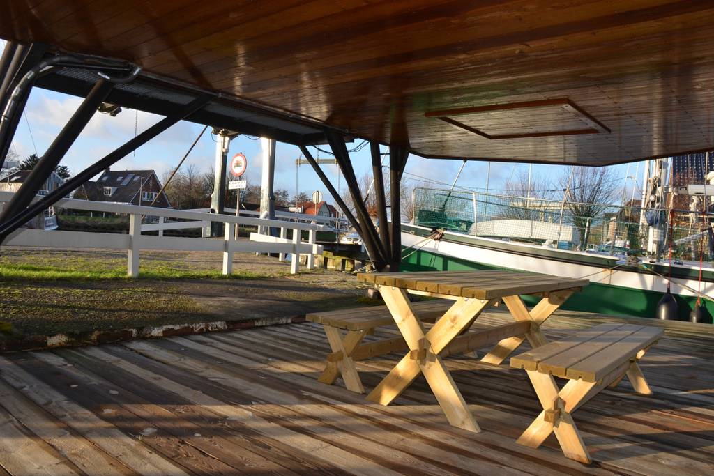 Voor de scheepskantine bevindt zich een met groen omgeven terras met tafel en fijne tuinstoelen. Daarnaast is het mogelijk om met uw eigen boot gratis aan te meren!