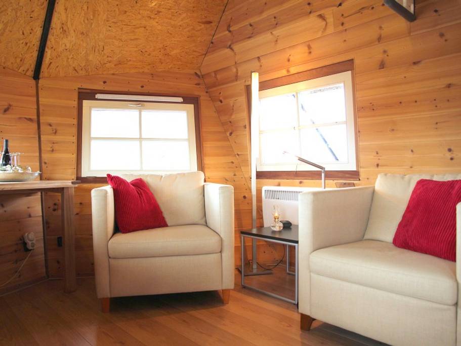 ‘t Scheepshuisje bestaat uit twee verschillende gedeeltes. Het eerste gedeelte is de oude scheepslift die bestaat uit een knusse zithoek, keuken, een tweepersoons eettafel en woonkamer. De inrichting is mooi en comfortabel en u heeft een fantastisch uitzicht over de kleine haven en het Noord-Hollands kanaal. Er is een klein balkon met comfortabele stoelen. Vanaf hier kunt u de voorbijgaande boten, zeilboten en cruiseschepen bekijken.