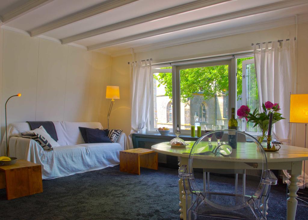 De royale woonkamer en de slaapkamer bieden een uniek uitzicht op de eeuwenoude kerk en het sfeervolle kerkplein. Alles voor een aangenaam verblijf is aanwezig: boeken en tijdschriften, digitale televisie, radio, DVD-speler en een goede fles wijn als welkom.