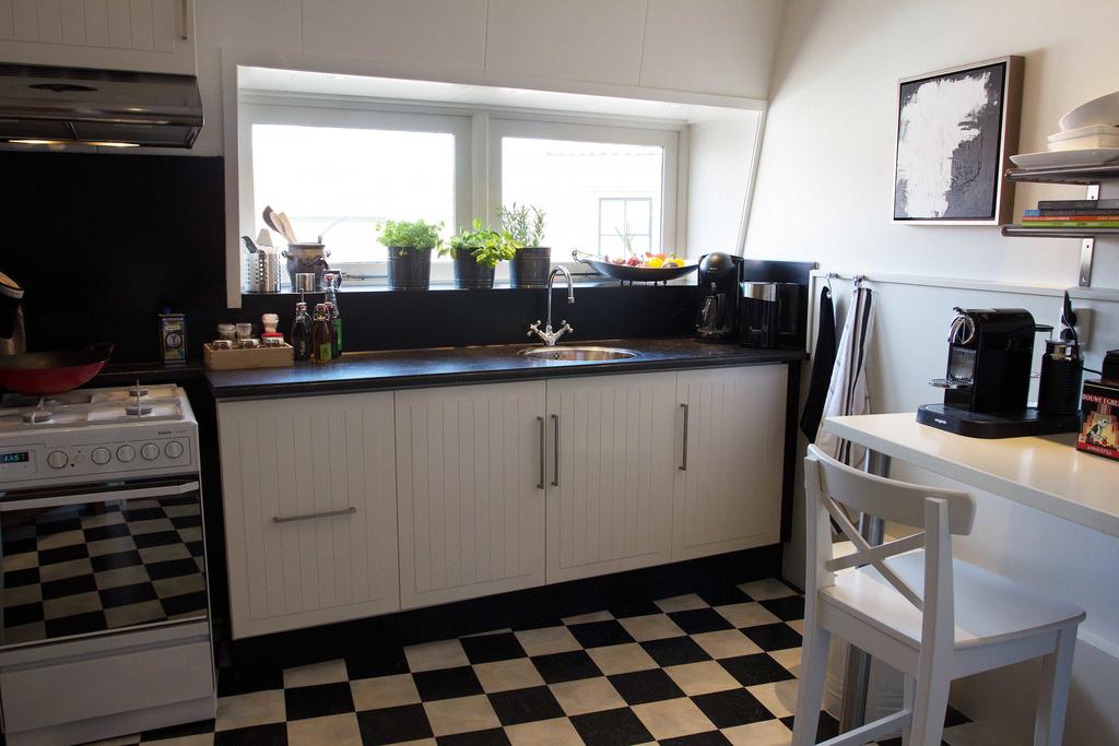 Er is een volledig ingerichte keuken en een eenvoudige en doeltreffend ingerichte badkamer (wastafel, douche, toilet).