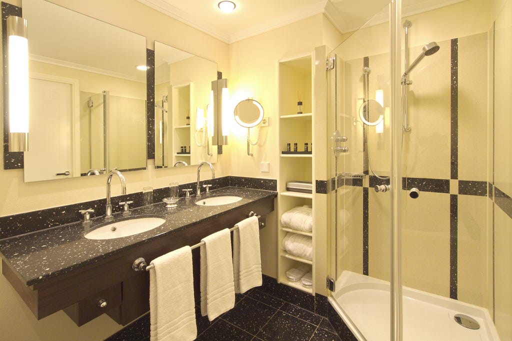 De hotelkamers zijn onder meer voorzien van airconditioning, televisie, gratis wifi, minibar, haardroger, badkamer met bad en/of douche, een verwarmd handdoekenrek en twee wastafels. Alle kamers hebben aparte toiletten.