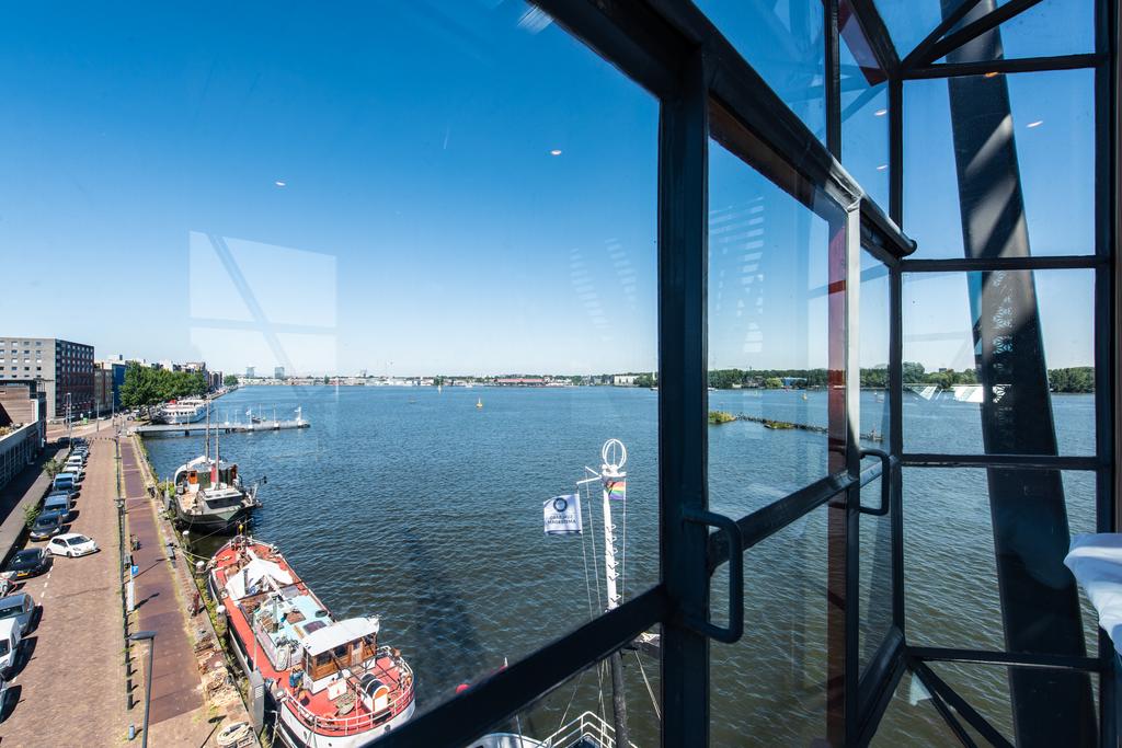 Zowel overdag als ‘s nachts is het hier genieten van het uitzicht, maar vooral ’s nachts is het uitzicht betoverend wanneer Amsterdam wordt verlicht en de bootjes en gigantische cruiseschepen op het IJ direct onder de kraan voorbij varen.
