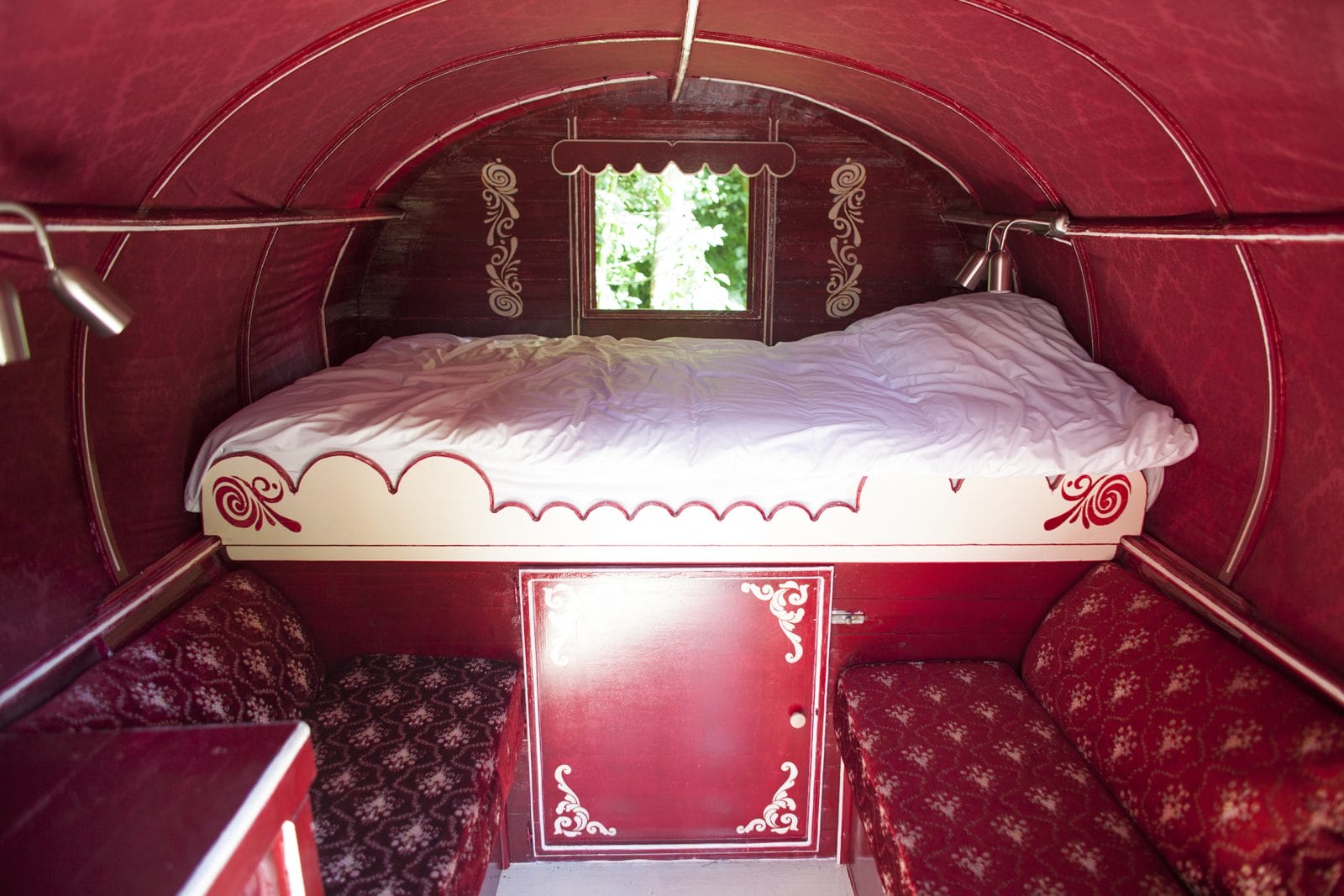 Deze woonwagen is gemaakt door een zigeunerfamilie volgens traditioneel ontwerp en afgewerkt met de typerende gouden versiersels. Het toppunt van kitsch!