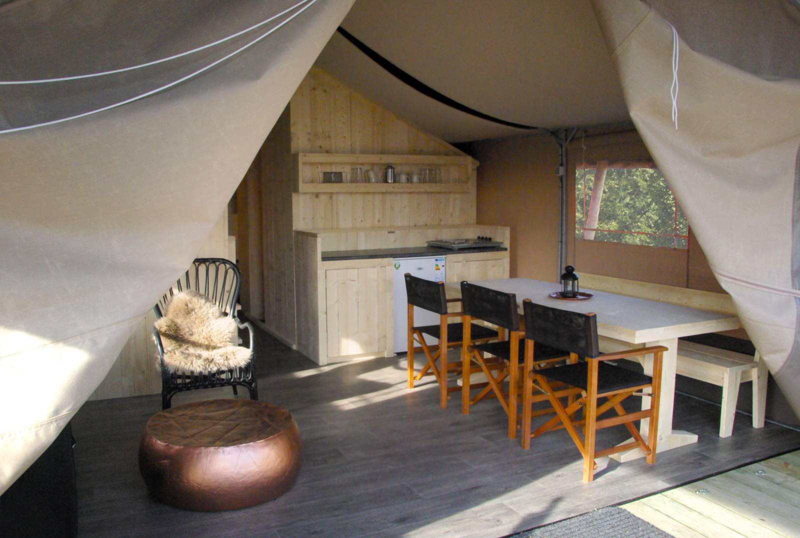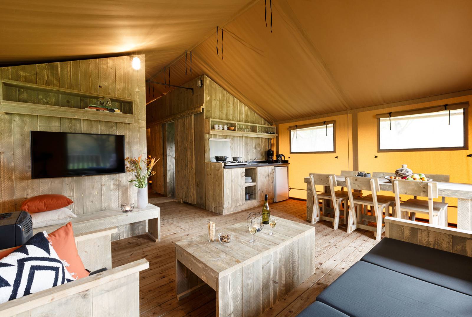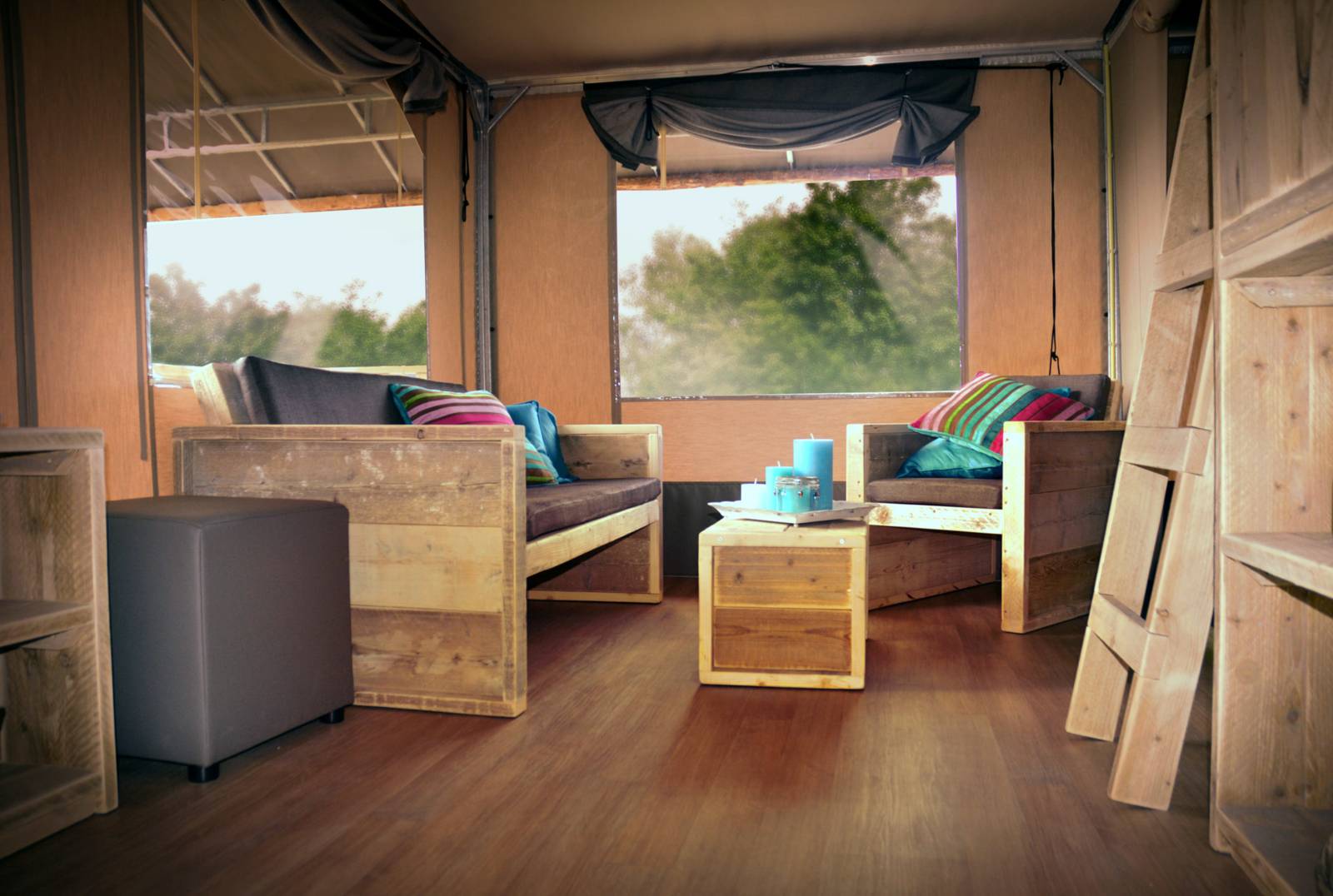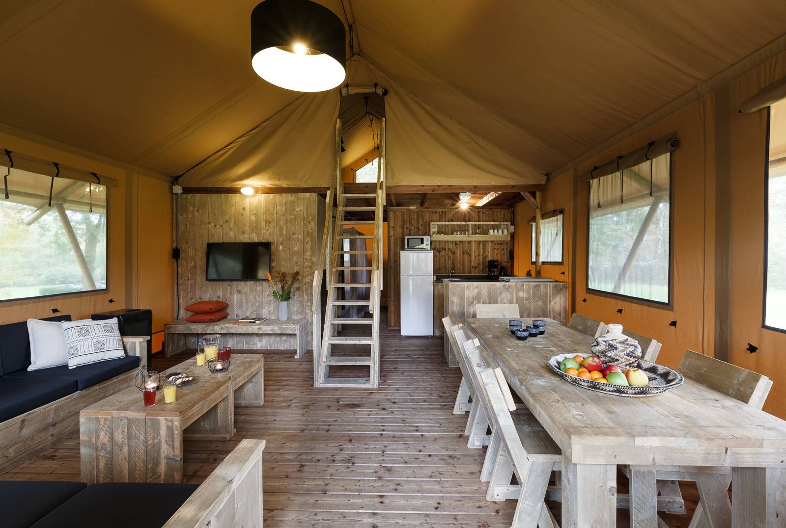 De boomhut biedt plaats aan maximaal 6 personen en de twee typen Safaritenten bieden plaats aan 6 personen (de standaard tent) of 8 personen (de Plus-tent).
