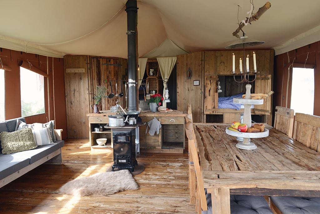 In de safaritenten van het park laat u zich in zekere zin terug gaan naar uw roots tijdens deze overnachting. U slaapt op een bedstee, doucht in de frisse buitenlucht en u kunt heerlijk ontspannen in de op hout gestookte jacuzzi. Authentiek logeren op een luxe manier!