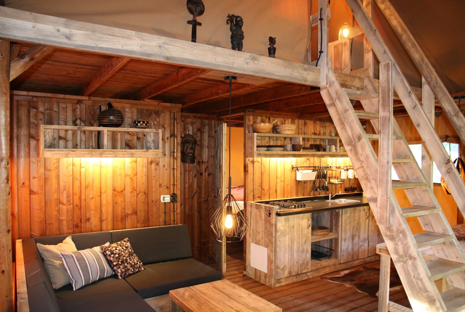 Er bevinden zich op het Vakantiepark blokhutten, chalets, jungalows (eigenlijk gewoon bungalows) en safaritenten. Allemaal met een Afrikaanse uitstraling én inrichting, en ook nog eens geschikt voor kleinere of grotere gezinnen.