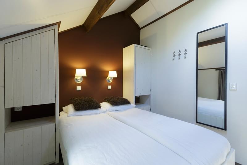 Elke mini-boerderij heeft drie slaapkamers waarvan de eerste slaapkamer een tweepersoonsbed heeft, de tweede kamer heeft een stapelbed en de derde slaapkamer is een heuse bedstee!