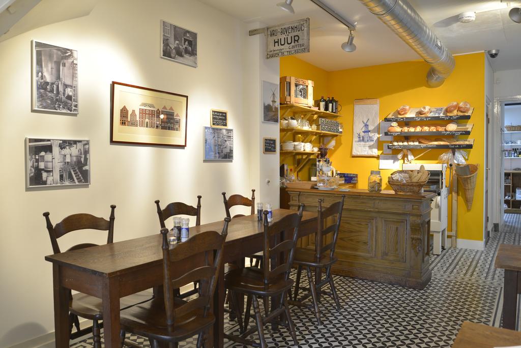 Daarnaast is op de begane grond een ambachtelijk bakkerswinkeltje gevestigd, waar u aan de grote tafel kunt genieten van een heerlijk ontbijt met dus brood uit eigen bakkerij en meel dat is gemalen met de eigen molens. U zit hier gewoon tussen de buurtbewoners die hier hun dagelijks brood komen halen.