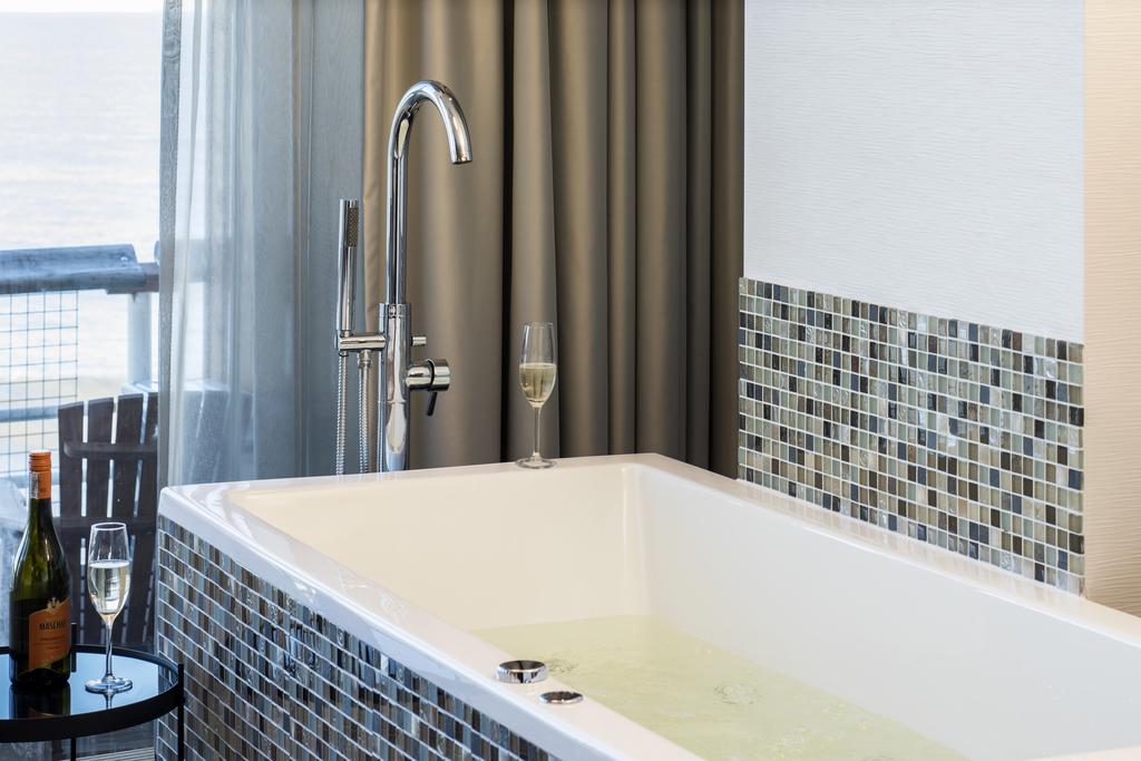 Verder heeft elke kamer openslaande deuren naar het balkon, waar u met mooi weer lekker kunt genieten van de zon. Maar ook bij slecht weer is het fijn in de kamer. Door de wind beweegt de pier een heel klein beetje en als u lekker in bad zit met een wijntje kunt u ondertussen genieten van de regen die tegen de ramen slaat.