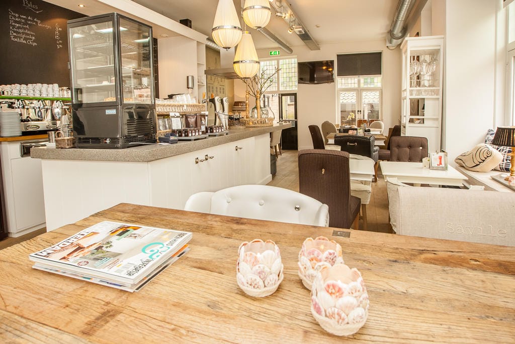 Op de begane grond is er een gezamenlijke woonruimte ingericht, waar u samen met de andere gasten in een gemoedelijk sfeer kunt genieten van het ontbijtbuffer. ‘s Avonds schuift u aan in het Grand Café (of de tuin) voor een lekkere borrel.