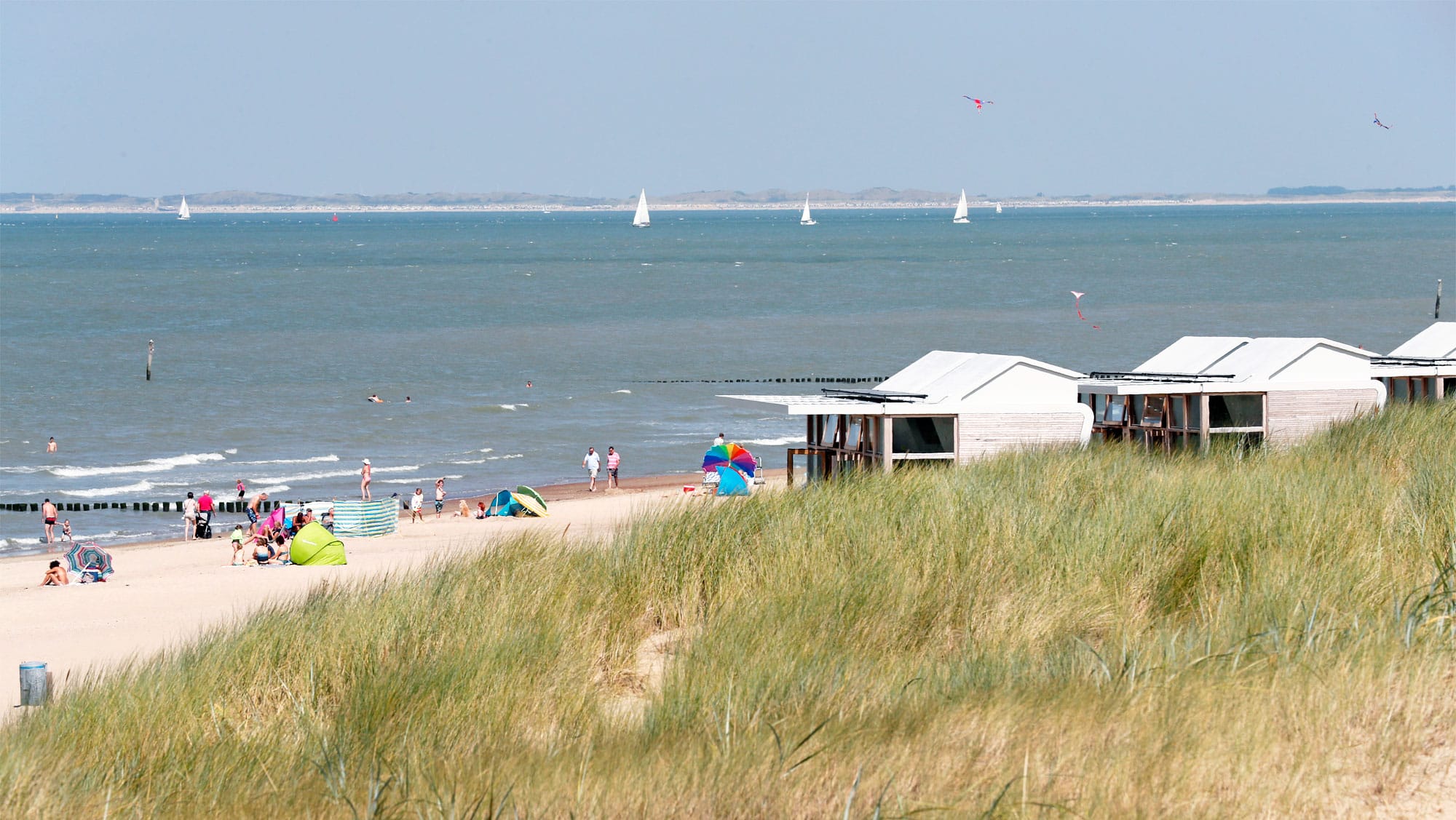 Dat zijn namelijk de strandhuisjes die aan de andere kant van de duin staan en zich letterlijk op het Noordzee-strand bevinden!
