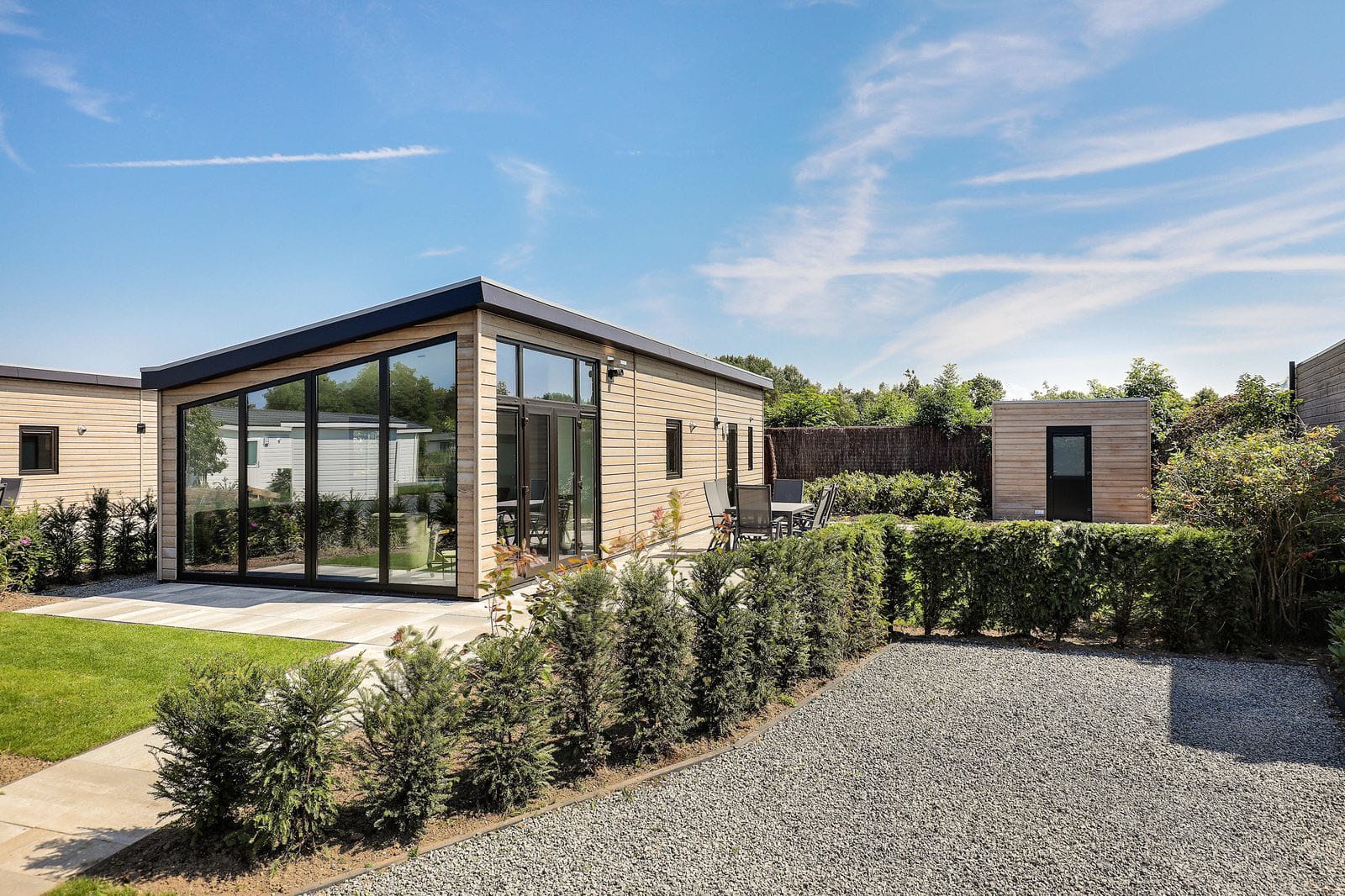 De watervilla’s zijn gelegen aan een waterpartij op een ruime kavel welke wordt afgeschermd door een hek, waardoor u erg veel privacy heeft. De liefhebber kan vanaf de vlonder in de tuin heerlijk ontspannen vissen, even tot rust komen!